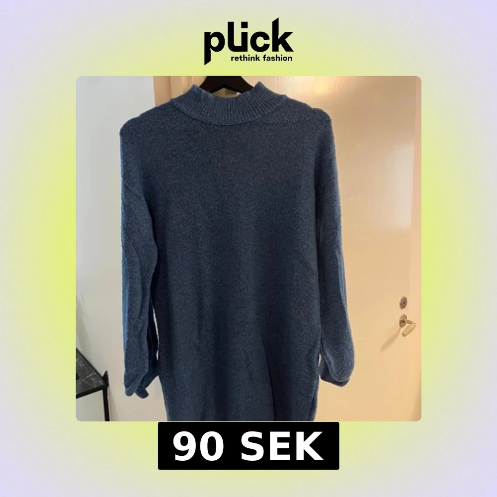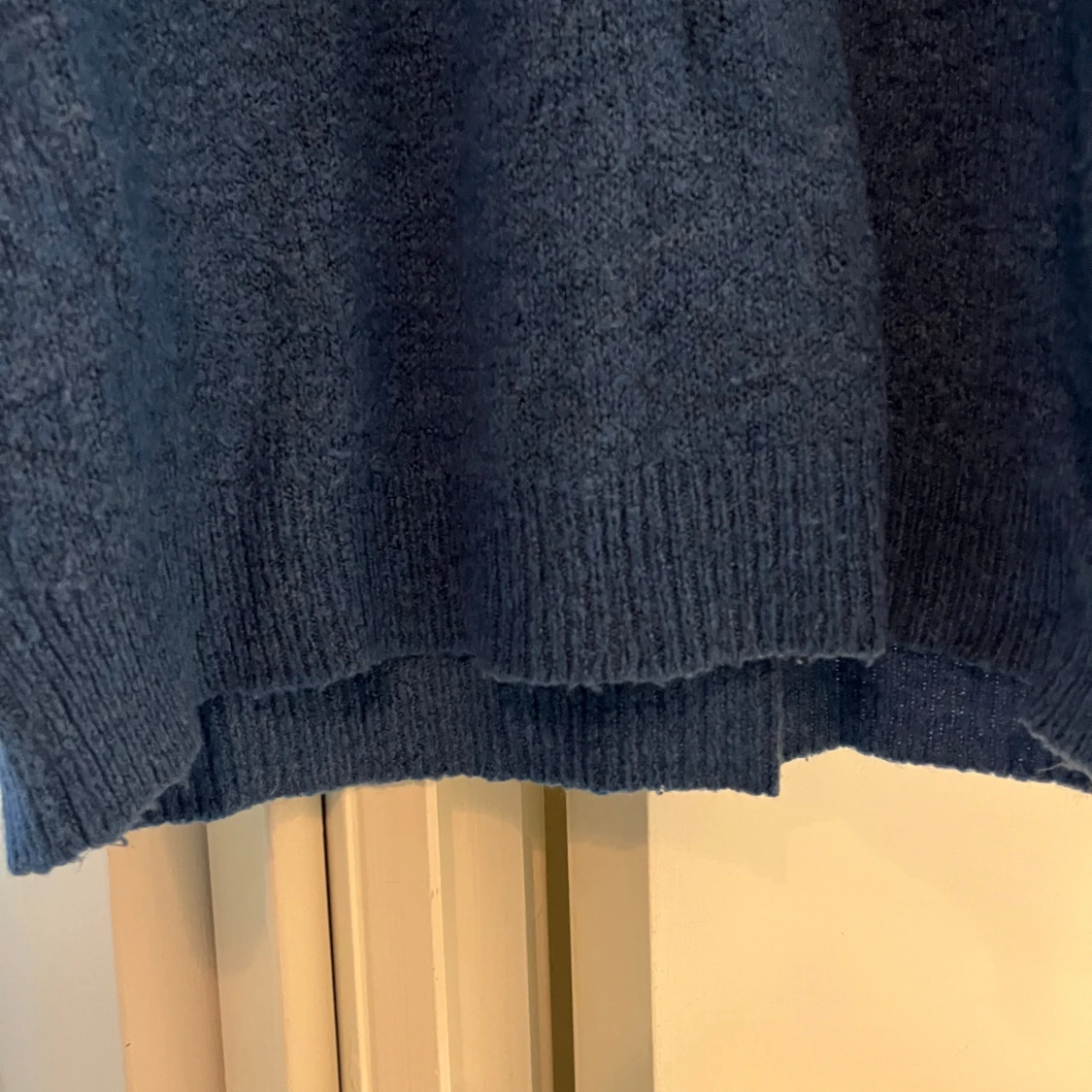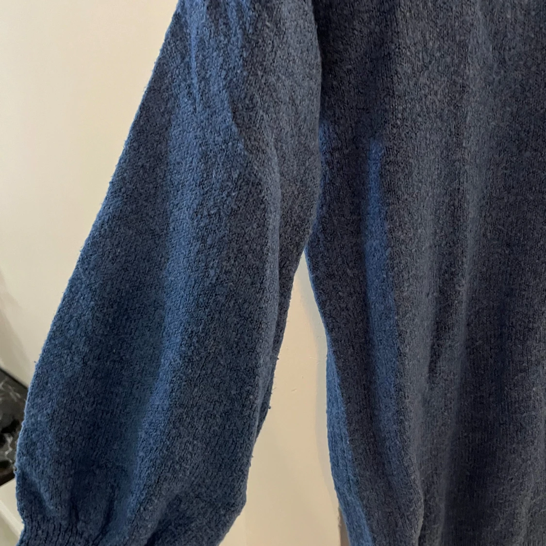 Mysig blå stickad polotröja med ribbad krage och muddar vid ärmslut och nederkant. Tröjan har en relaxed passform och är perfekt för kyliga dagar. Enkel och stilren design som funkar till många outfits.