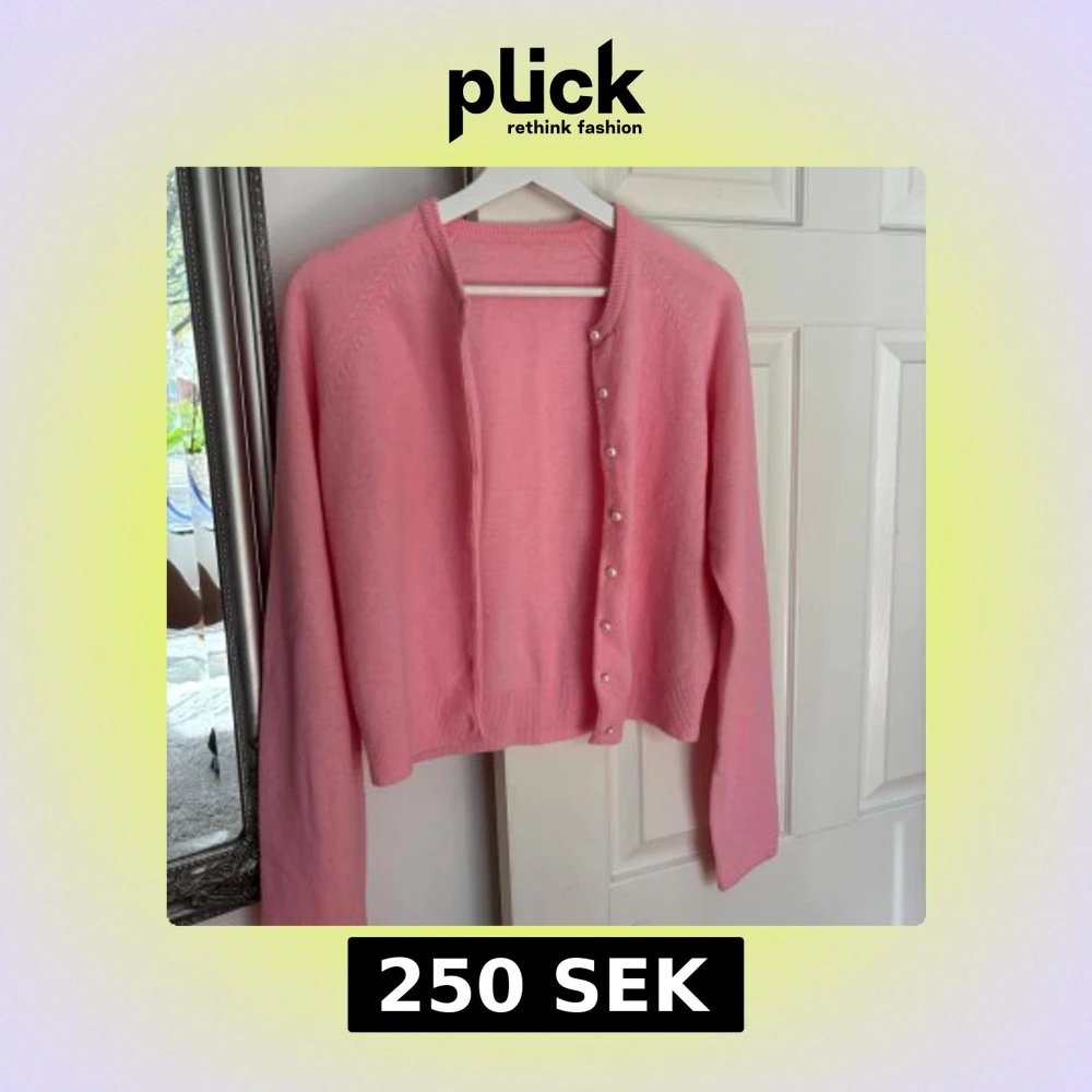 Söt rosa kofta från C Clothes i storlek S. Tillverkad i en mjuk blandning av lammull, nylon och angora. Koftan har långa ärmar och pärlknappar framtill som ger en extra fin detalj. Perfekt att slänga på sig när det är kyligt ute.
