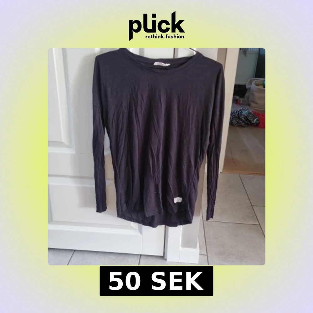En enkel svart långärmad tröja i mjuk bomull. Tröjan har rund halsringning och en liten etikett nertill. Perfekt att matcha med jeans eller kjol för en clean look.