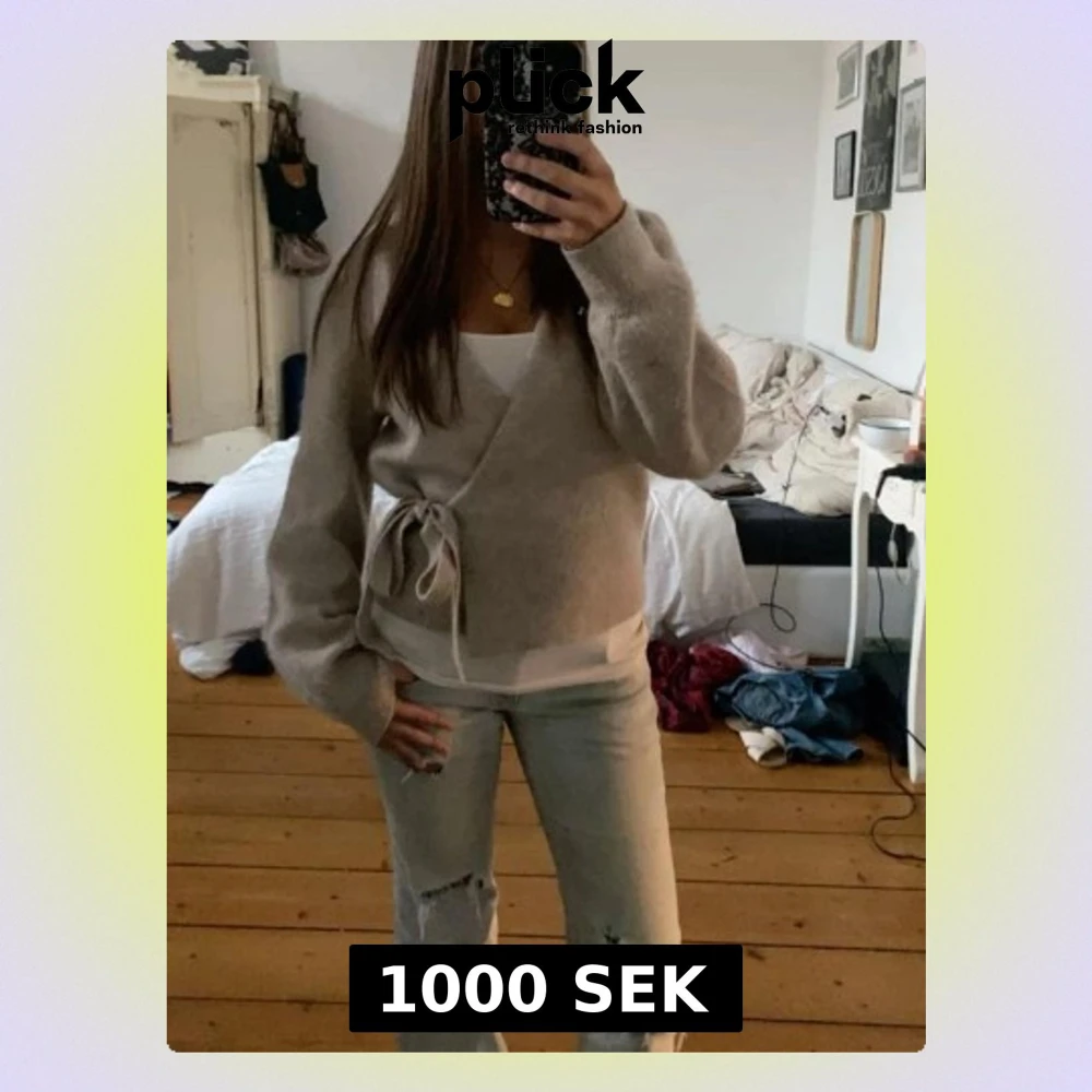 Snygg beige omlottkofta med knytband i midjan och långa ärmar. Koftan har en mjuk och fluffig känsla, perfekt för lager på lager. Passar till både jeans och kjol för en chill look.