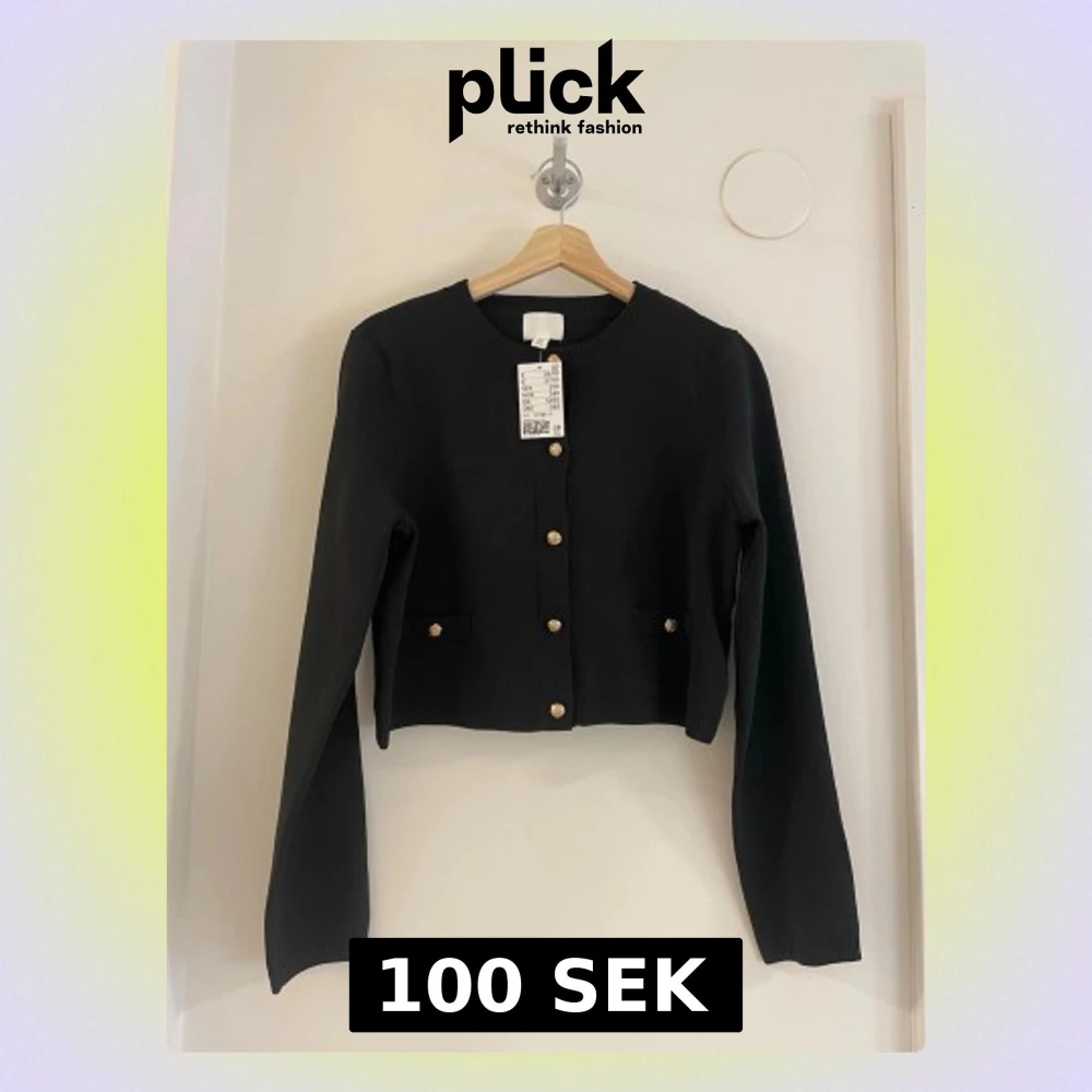 Svart kofta med guldfärgade knappar