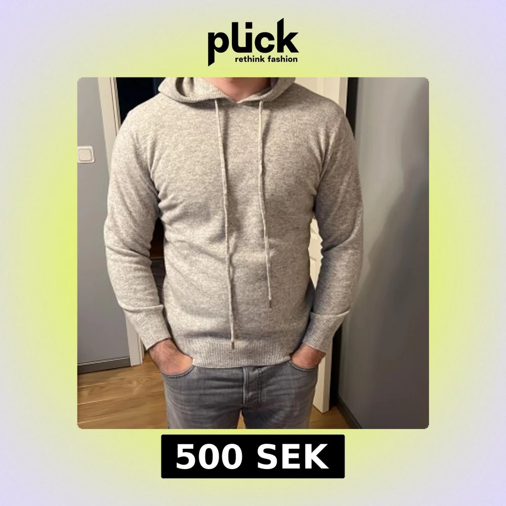 Mjuk och stilren ljusgrå kashmir cardigan med dragsko i huvan. Tröjan har långa ärmar och ribbade muddar vid ärmslut och nederkant. 100% Kashmir. Aldrig använt goodie bag finns med. Storlek M, pris går att diskutera