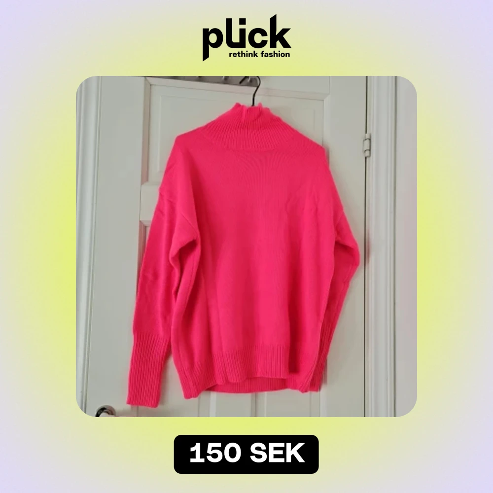 Säljer en supercool neonrosa stickad polotröja. Den är perfekt för att lysa upp vilken grå dag som helst! Tröjan har långa ärmar och en hög polokrage som håller dig varm och mysig. Perfekt för höst och vinter. Oanvänd