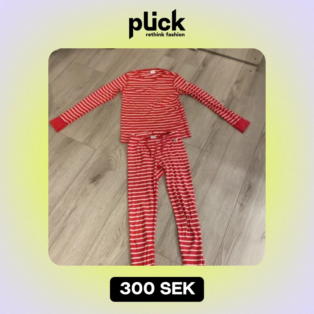 En röd polarn och pyret pyjamas. Jag säljer den för att den är för liten och inget jag använder längre ( den har ett litet hål vid knät ) (jag står ej för frakten)