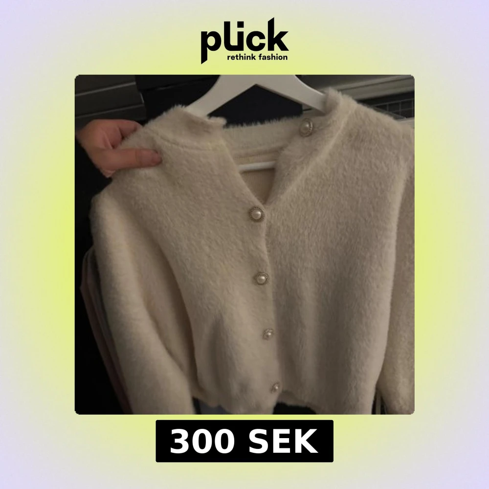 Supermjuk och fluffig beige kofta med snygga pärlknappar framtill. Koftan har lång ärm och en croppad passform som ger en trendig look. Perfekt att slänga på sig när det är kyligt ute.