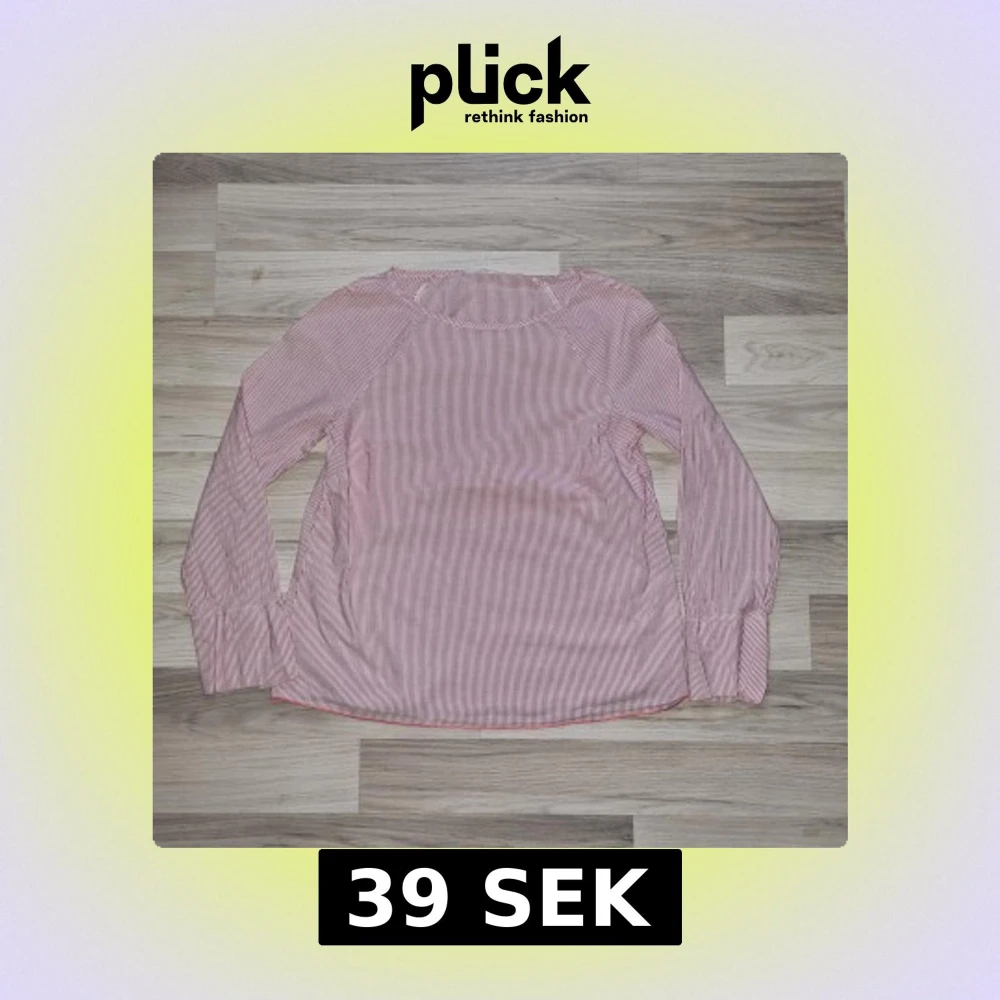 Säljer en stilren rosa- och vitrandig blus med långa ärmar. Perfekt för en avslappnad men ändå chic look. Blusen har en rund halsringning och är tillverkad i ett lätt och bekvämt material.