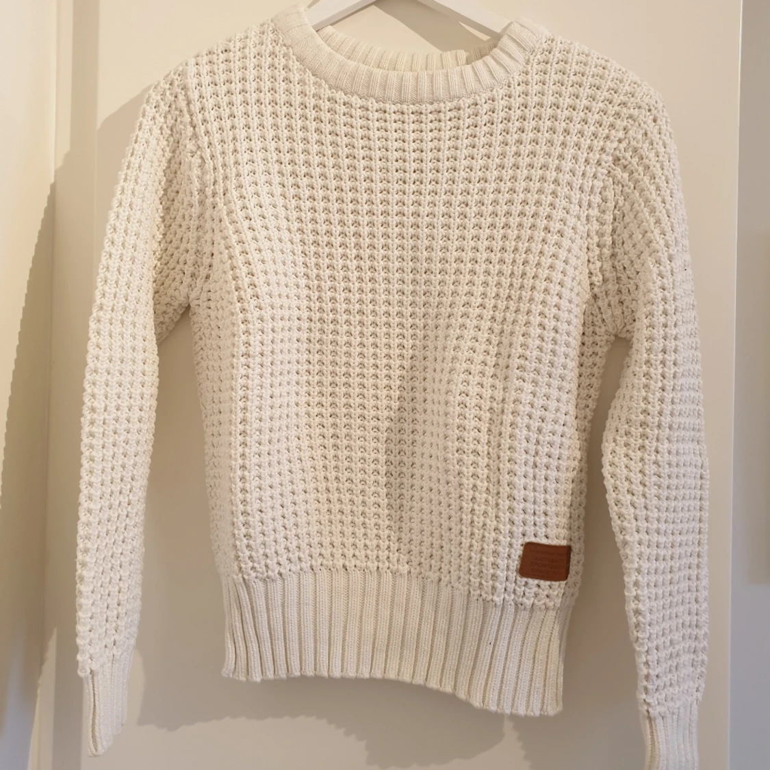 Virkad collegetröja. Storleken är som en S/M. Frakt tillkommer!