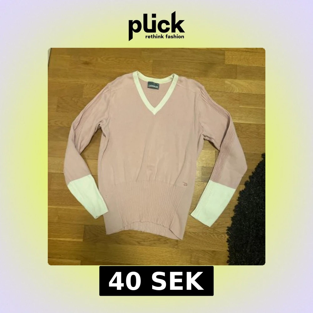 Säljer en stilren rosa tröja från Ivanhoe med vita detaljer. Tröjan har en v-ringad hals och långa ärmar med ribbade partier. Perfekt för en avslappnad stil.