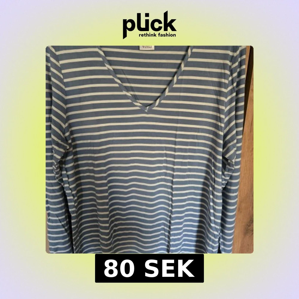 Säljer en blå och vit randig långärmad tröja från Voiid med v-ringad hals. Perfekt för en avslappnad stil och passar året runt. Supermjuk och skön att ha på sig!