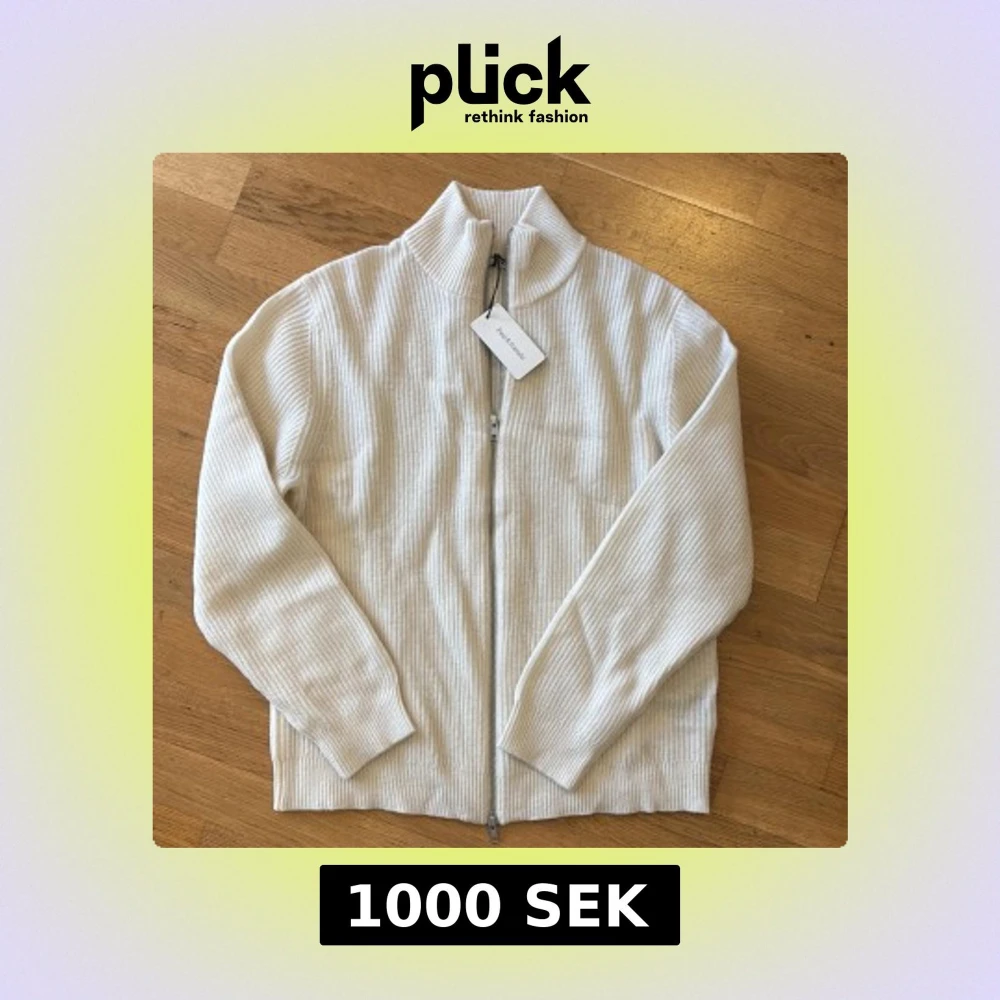 Säljer en stilren vit ribbad tröja från Paul & Friends. Tröjan har en dragkedja framtill och en hög krage. Perfekt för en avslappnad och snygg look. Oanvänd då det var en present och storleken inte passade. Nypris 2 000 kr, inköpt på NK. Storlek L