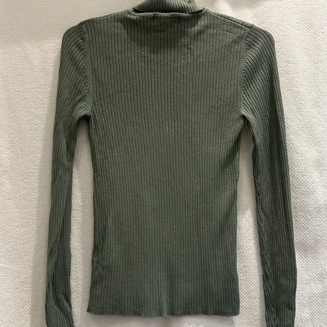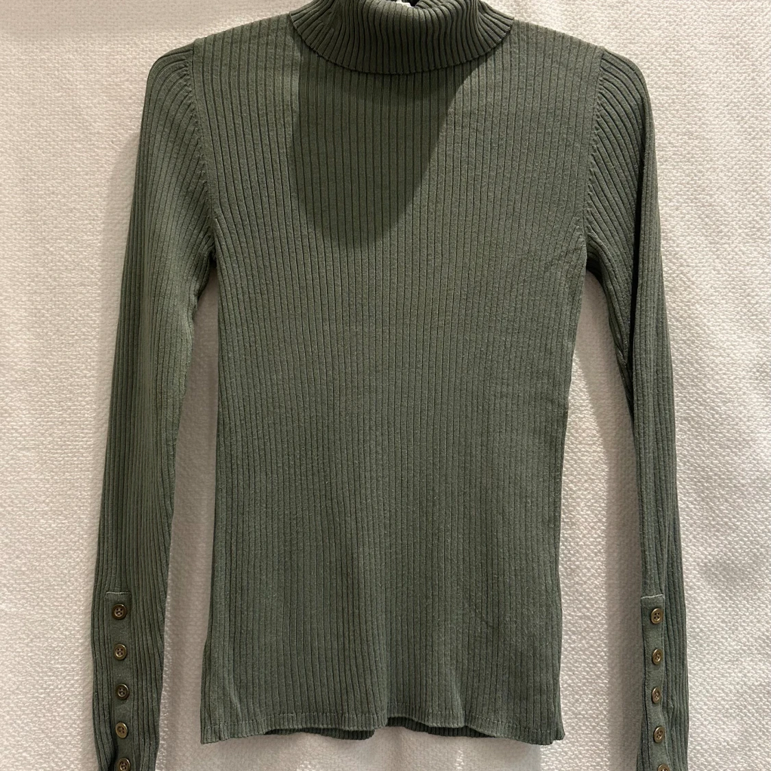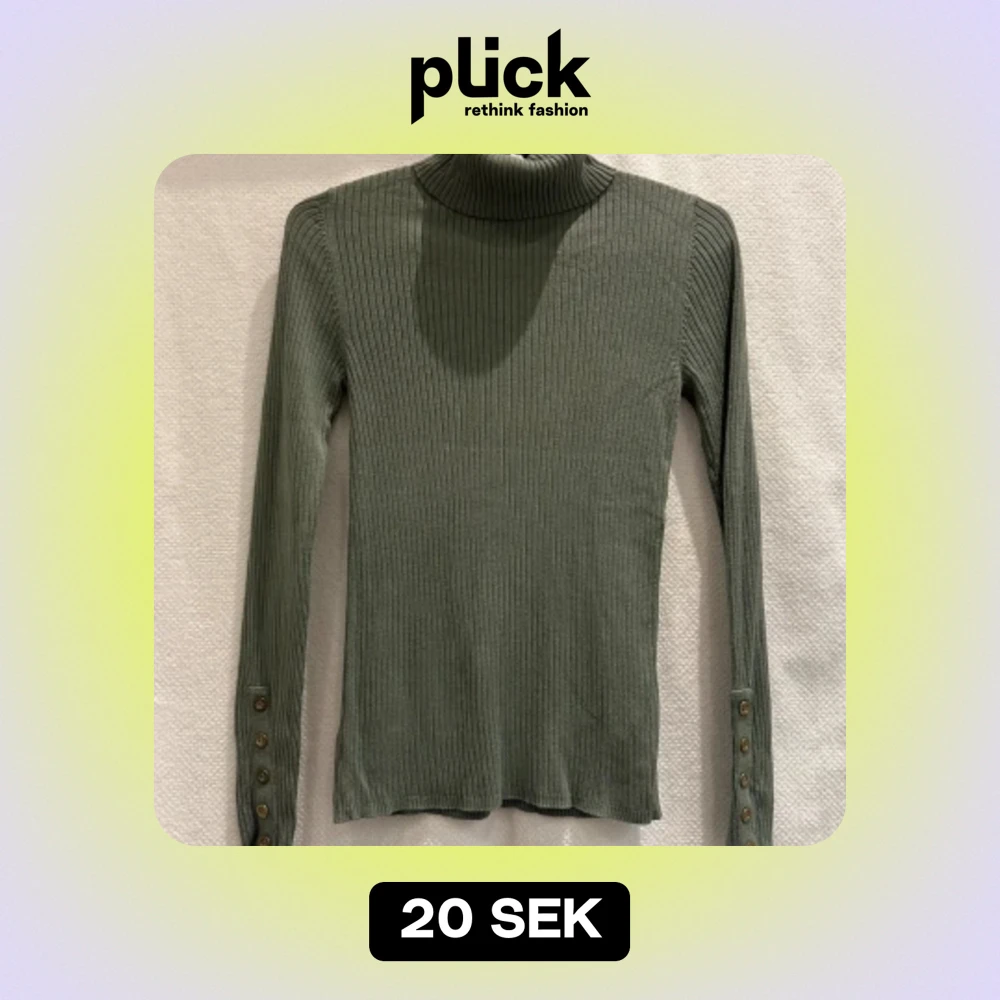 Grön stretchig polojumper med dekorativa knappar på ärmarna. Strl: 8