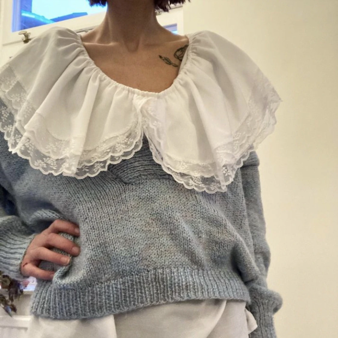 Riktigt finnstickad tröja i turkos. Färger blir inte riktigt bra på bild, den är lite klarare. Går att styla med något coolt under eller bara ha den som den är. Inte sticksig :). Blusen finns till salu i annan annons.