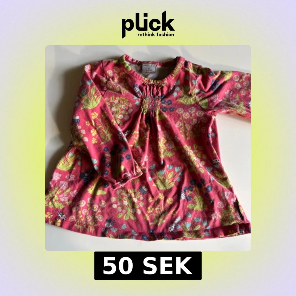 Supersöt långärmad tröja från Polarn O. Pyret i rosa med färgglatt blommönster och små bin. Tröjan har rynkdetalj vid halsen och är tillverkad i mjuk bomull. Perfekt för vår och sommar när man vill ha något lekfullt och bekvämt.
