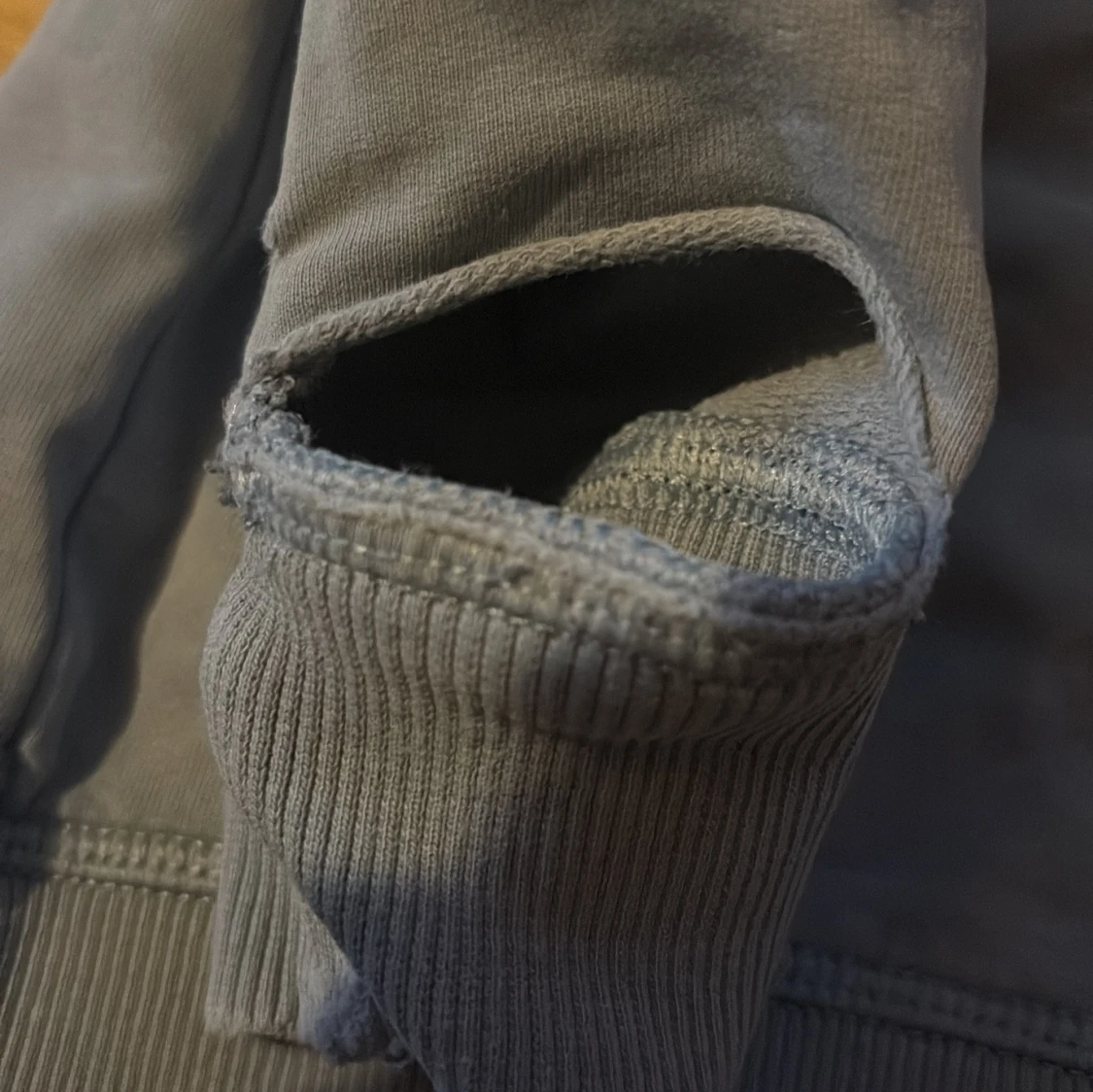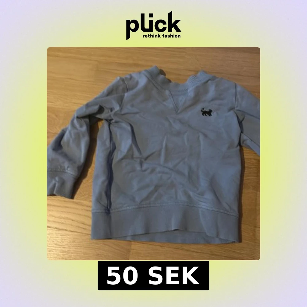 En basic blå sweatshirt med lång ärm och ribbade muddar. På bröstet finns en liten broderad svart katt som detalj. Tröjan är gjord i mjuk bomull och har en klassisk passform med rund halsringning.(sönder i armen går att sy)