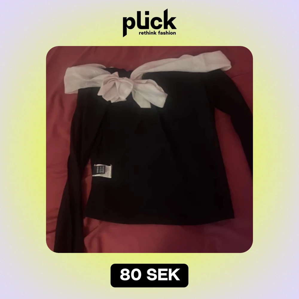 En elegant svart långärmad tröja med en vit rosett vid halsen. Tröjan har en normal passform och är tillverkad av ett mjukt material som ger en bekväm känsla.