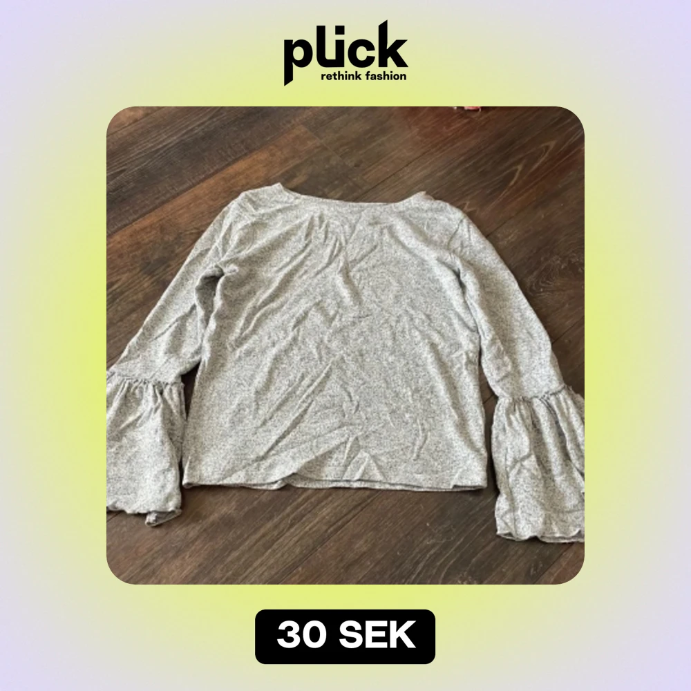 Långärmad grå tröja med utsvängda ändar på ärmarna. Använt sparsamt och är i väldigt gott skick.