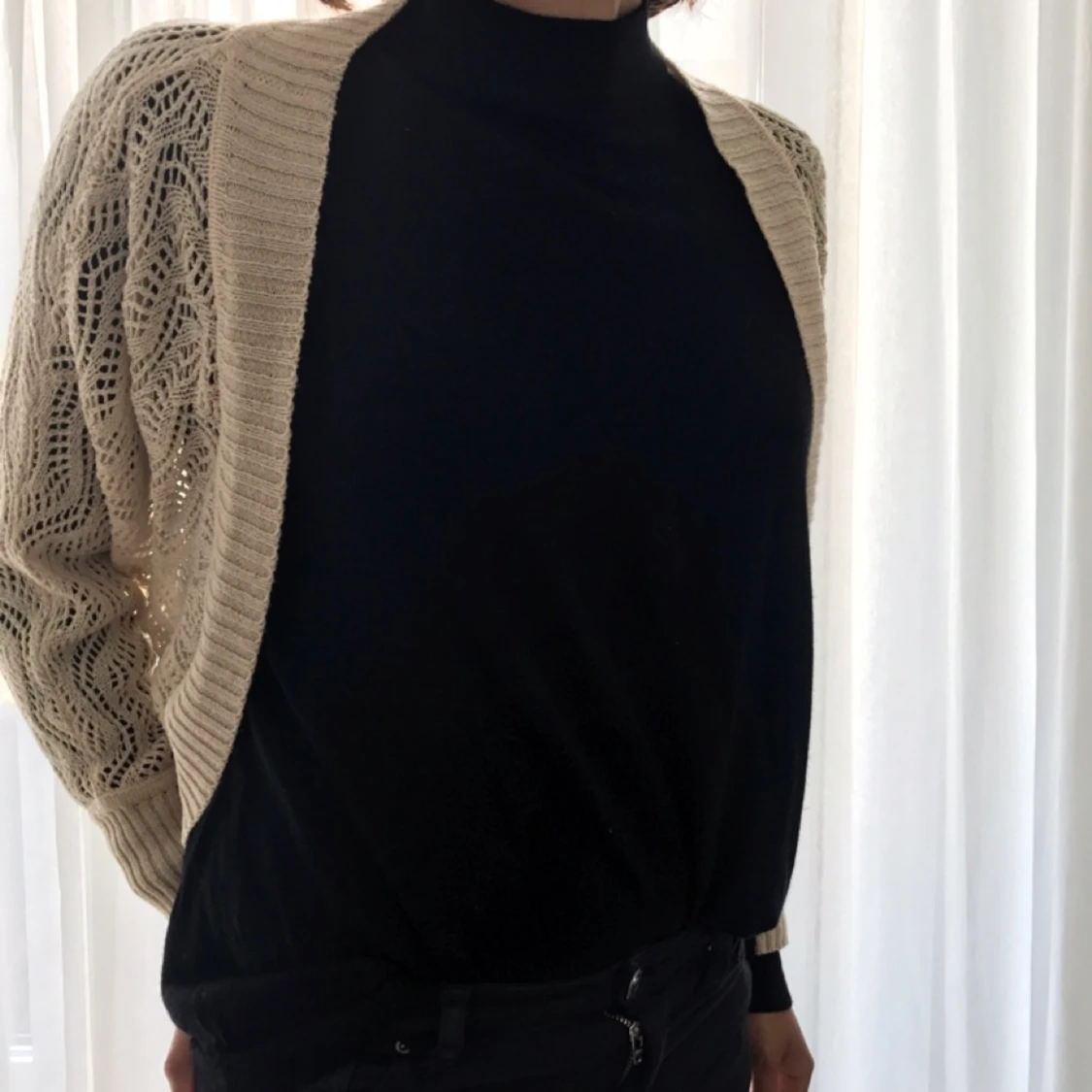 Soft white cardigan, hand made with a special pattern by a local oriental store. Bought on a trip, never used. Looks fabulous. Shipping will be added and by payment through swish.