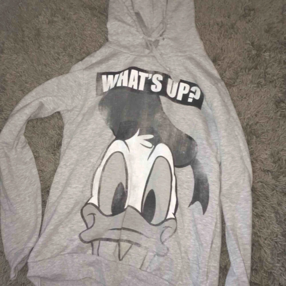 En Hoodie i storlek SMALL, med motiv av Kalle Anka. Använd 1 gång. Säljes då den inte kommer till användning. •Köparen står för frakt!
