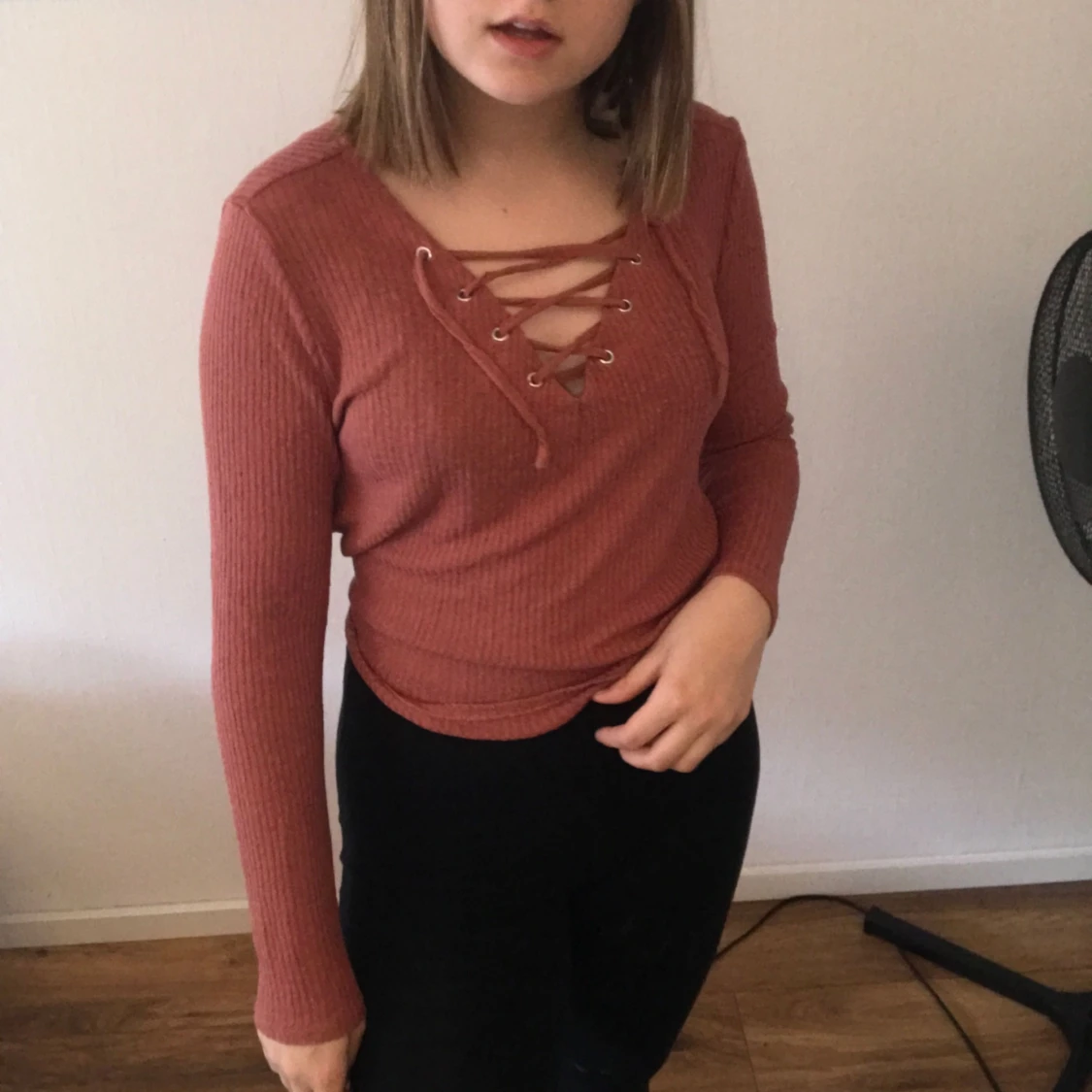 Snygg ribbad snörad tröja, aldrig använd !