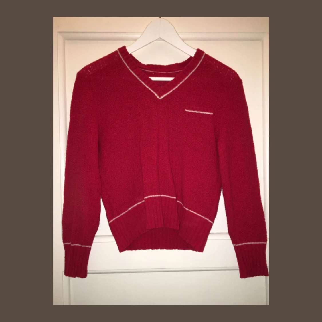 Svingullig stickad top, köpt på en secondhand butik i Prag! Jag gissar att storleken är S/M (det finns ingen lapp), men materialet är strechigt och den sitter bra på mig som är M/L. Den e ganska kort, aka jättesnygg med en high-waist underdel. Twin Peaks vibes🏔💘 Frakten betalas av köparen elr så möts vi upp i Stockholm🌷