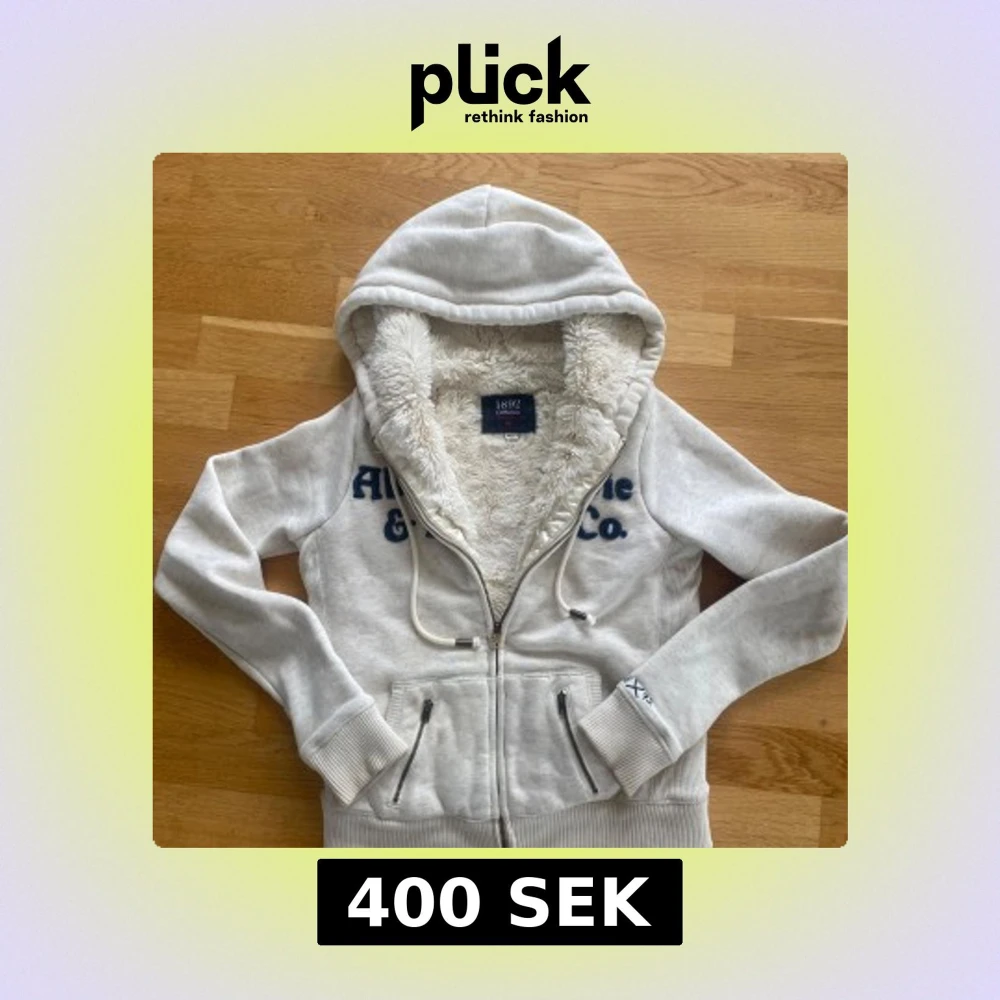 Supermjuk vit hoodie från Abercrombie & Fitch 1892 Collection med fluffigt pälsfoder, broderad logga i mörkblått, dragkedja, snörning i huvan och två fickor med dragkedja. Perfekt för kyliga dagar och riktigt cozy vibes.