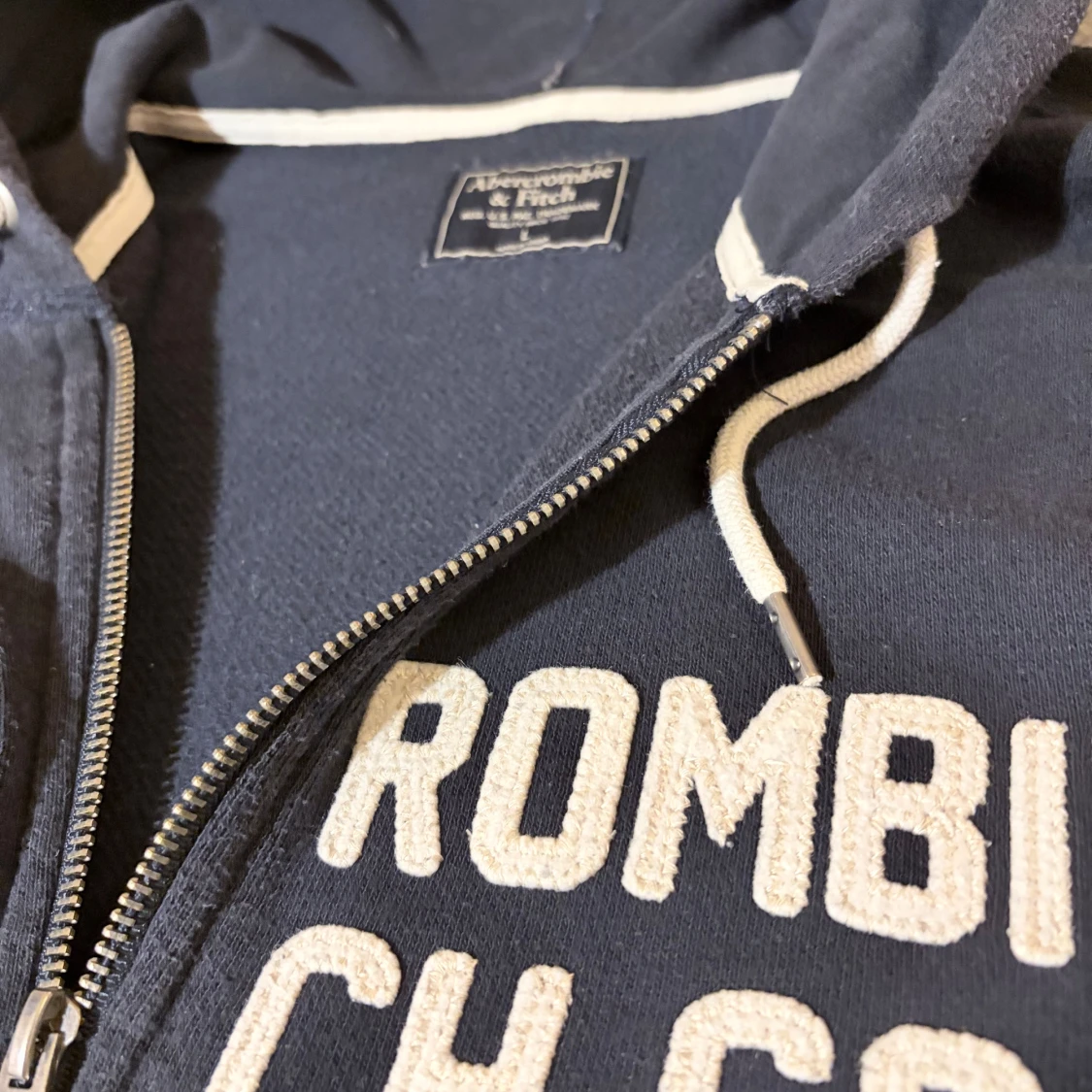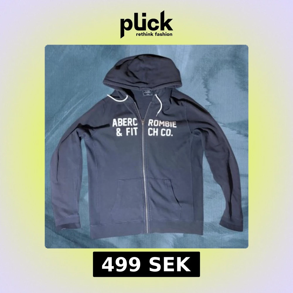 Svart hoodie från Abercrombie & Fitch med vit broderad logga på bröstet. Tröjan har huva med vita snören och dragkedja framtill. Långärmad och i mjukt bomullsmaterial, perfekt för en chill och avslappnad stil. Priset kan diskuteras vid snabb affär annars är det slutgiltigt. Ha det topp//Gidlöfs