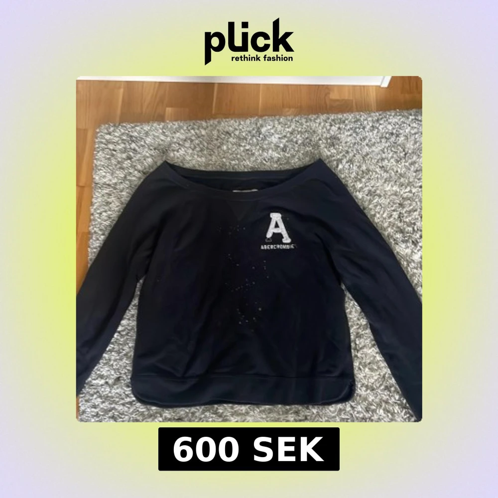 Svart sweatshirt från Abercrombie & Fitch med stort vitt A och broderad logga på bröstet. Tröjan har bred halsringning och långa ärmar vilket gör den liten of sholder, perfekt för en chill och avslappnad look. Mjuk insida och klassisk passform.