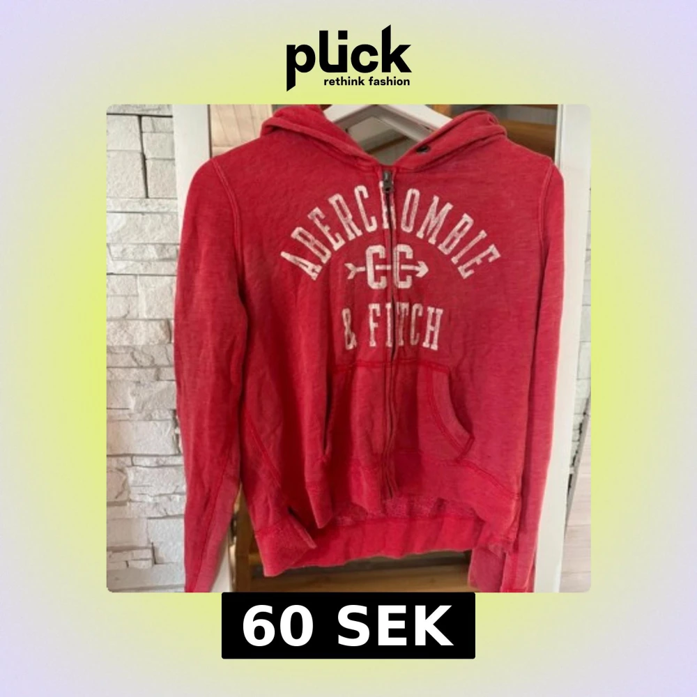 Snygg röd hoodie från Abercrombie & Fitch i storlek M. Tröjan har vit logotyp framtill, huva med snörning och en praktisk känguruficka. Dragkedja hela vägen och mjukt material som känns skönt mot huden. Perfekt för chill dagar och streetstyle.