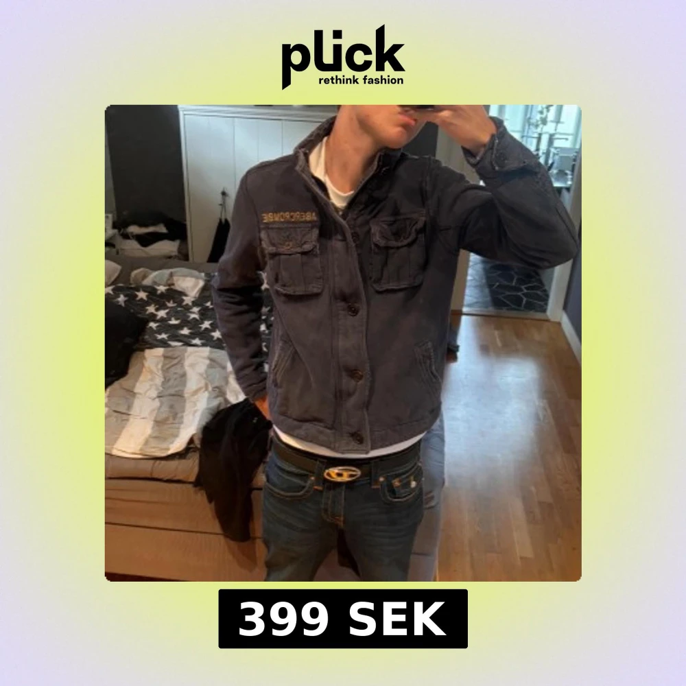 Säljer en mörkblå jacka/tröja från Abercrombie med hög krage, går att vika ner. Snygga knappar på. Bra kondition. Endast lite svårt att stänga zipen men det går. Sitter åt tight