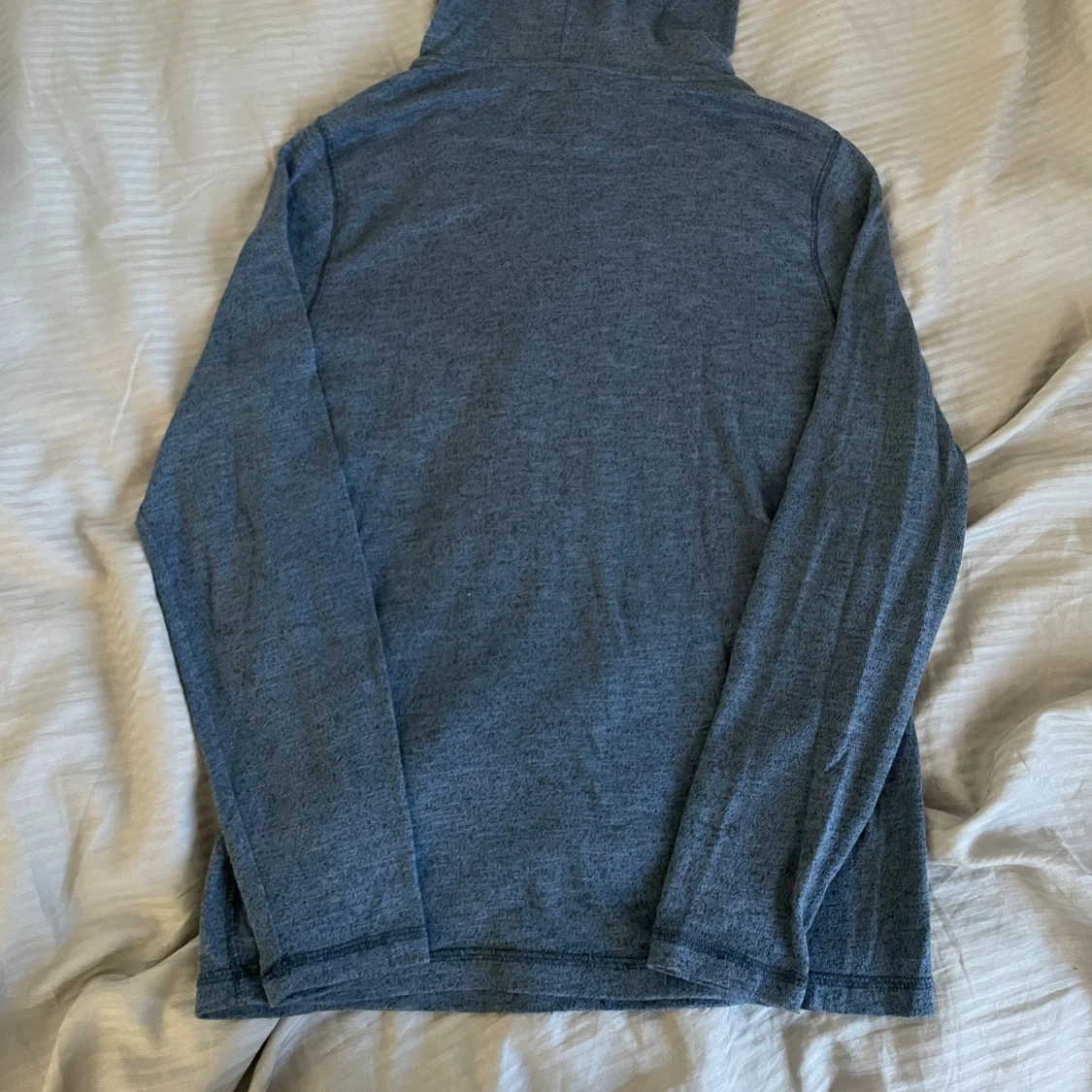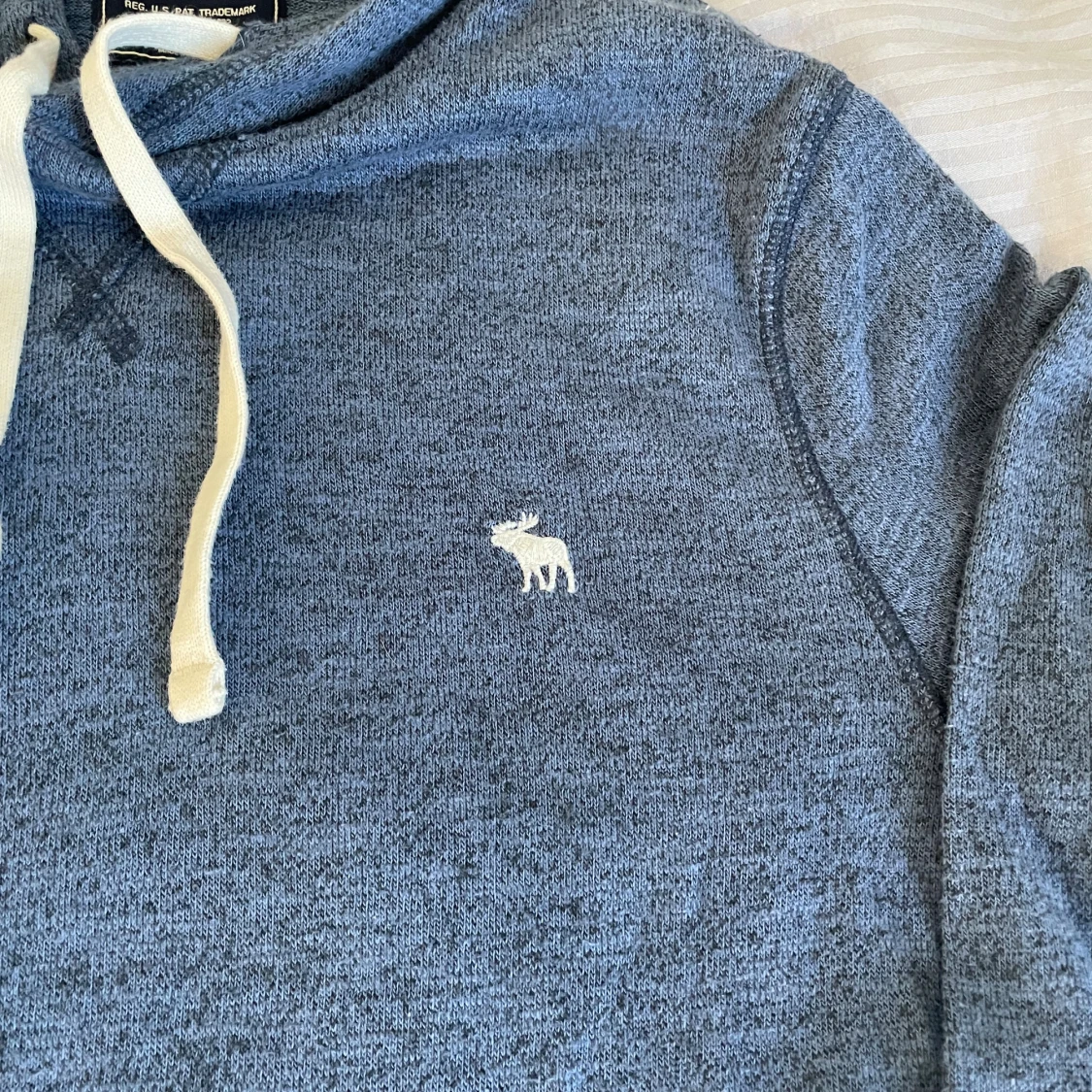 Mysig blå hoodie från Abercrombie & Fitch med vit dragsko och klassisk älglogga broderad på bröstet. Tröjan har känguruficka framtill, huva och är tillverkad i mjuk bomullsblandning. Perfekt för chill dagar eller när du vill ha en avslappnad stil.