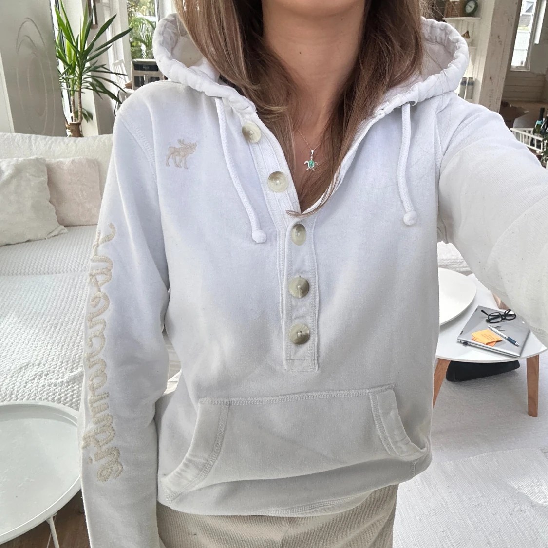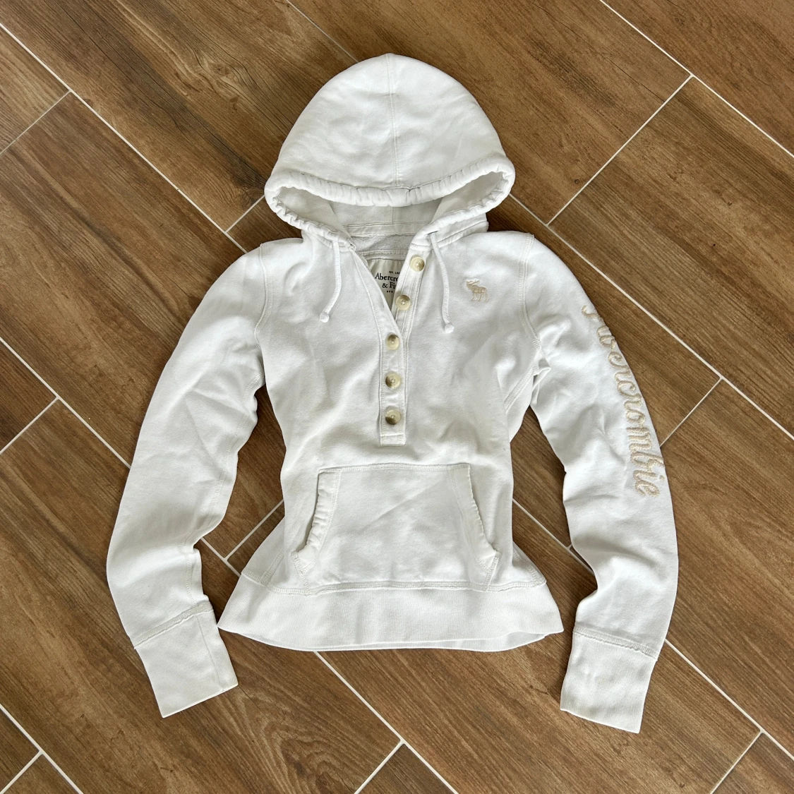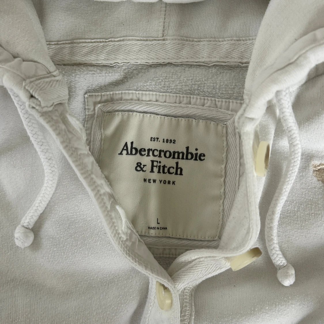 En hoodie från Abercrombie & fitch i storlek L. Kan upplevas betydligt mindre i storlek. Jag fraktar inom 24h. Se liknande i min profil!