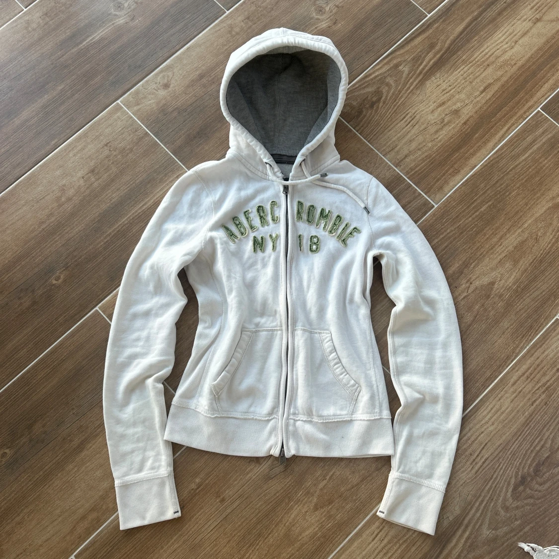 En zip från Abercrombie & fitch i storlek M. Kan upplevas mindre i storlek. Någon liten fläck på framsidan (skriv för bild). Jag fraktar inom 24h. Se liknande zip i min profil!