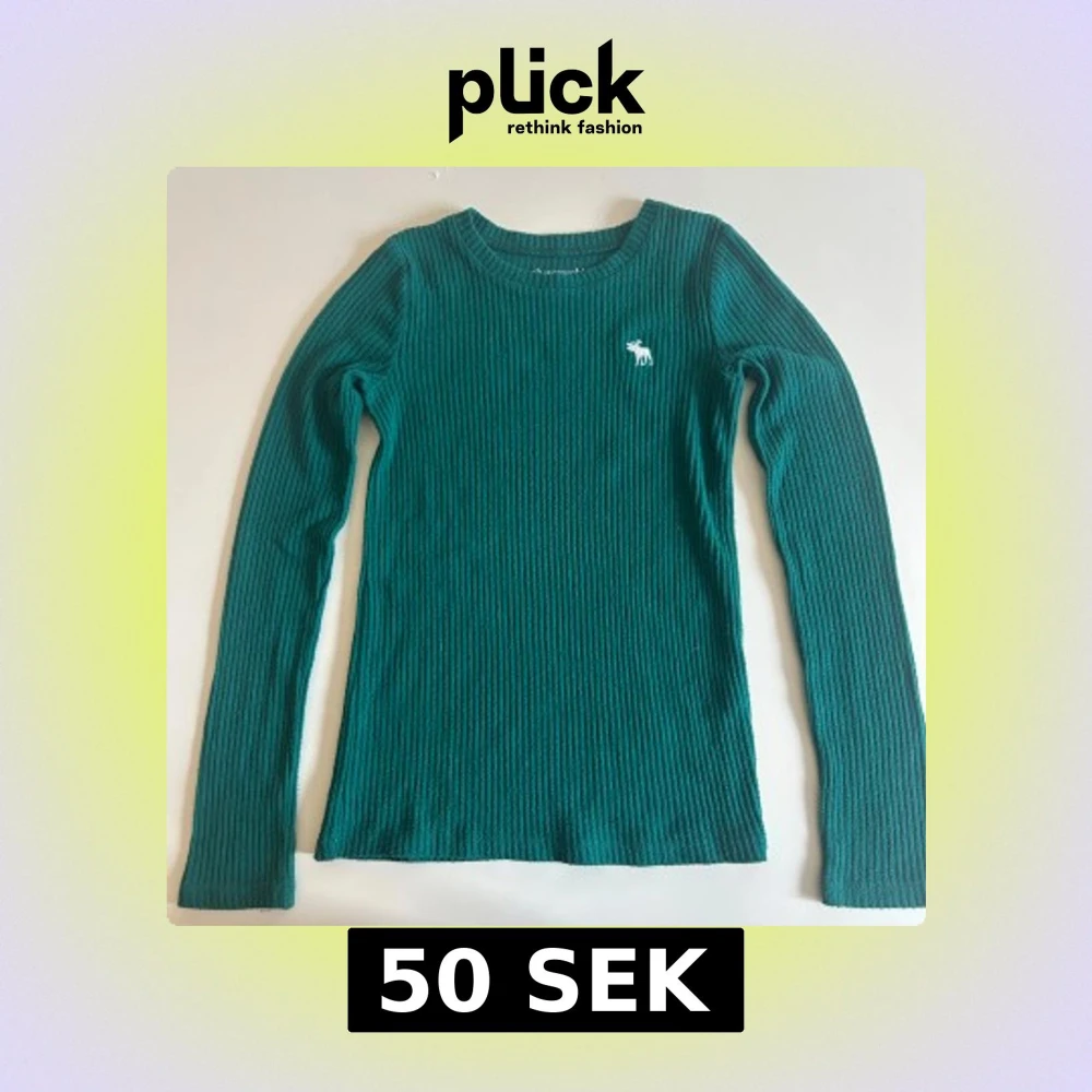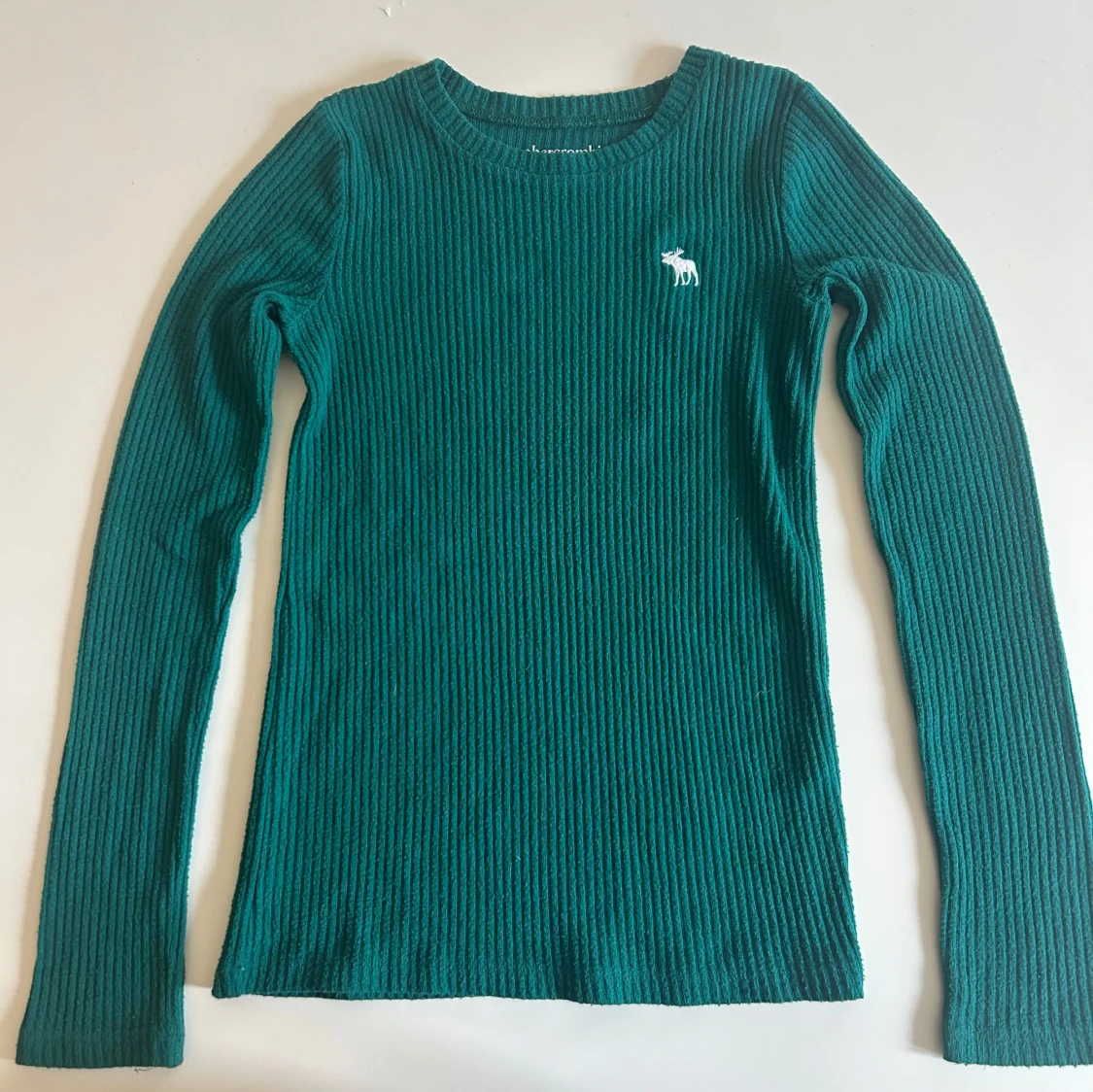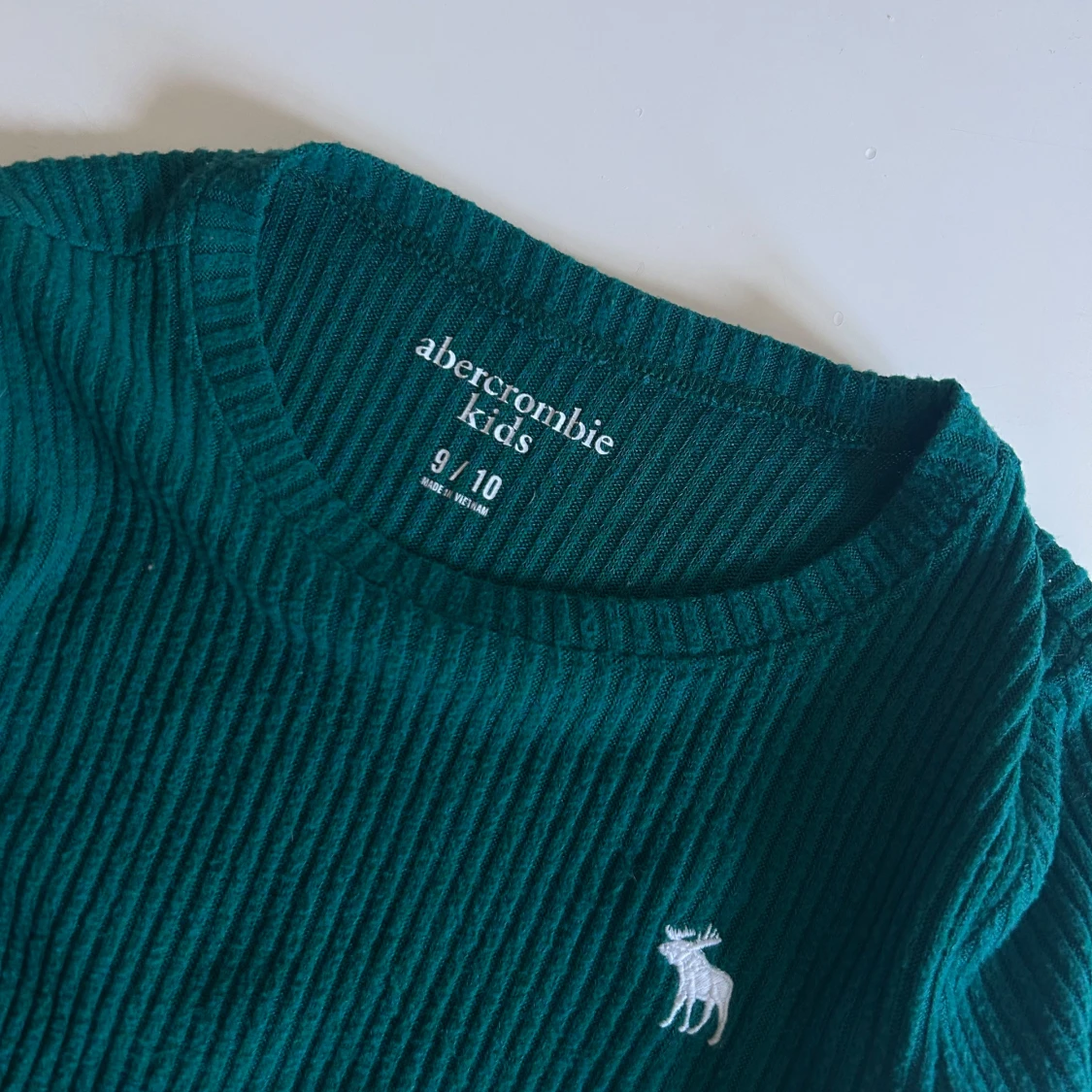 Grön barntröja från Abercrombie kids i storlek 9/10 år. Man ser att tröjan blivit använd då den är lite nopprig.