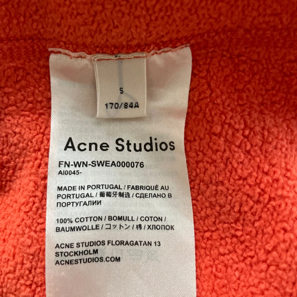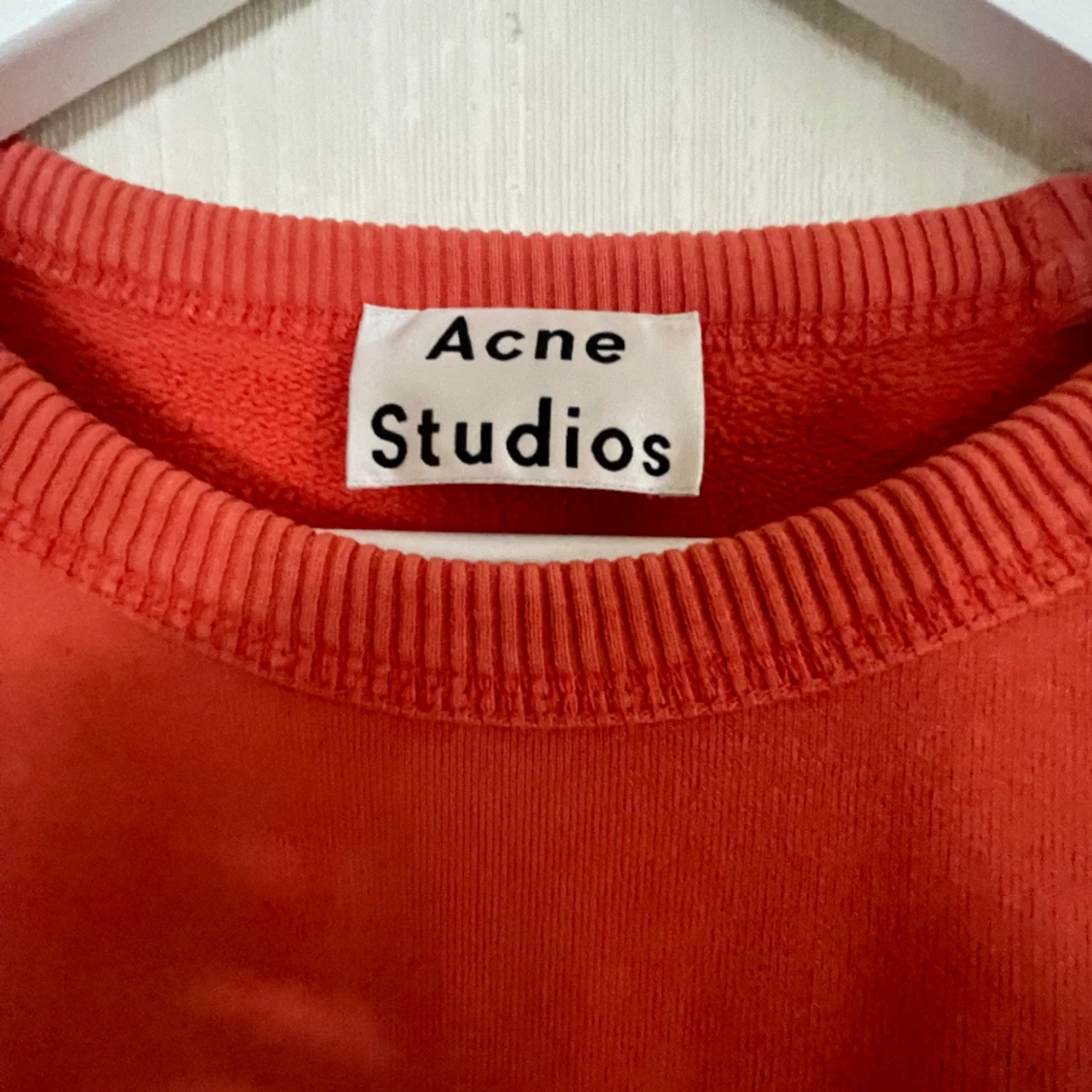 Röd/orange collage-tröja från Acne Studios. Nypris cirka 2000. Använd men i bra skick.