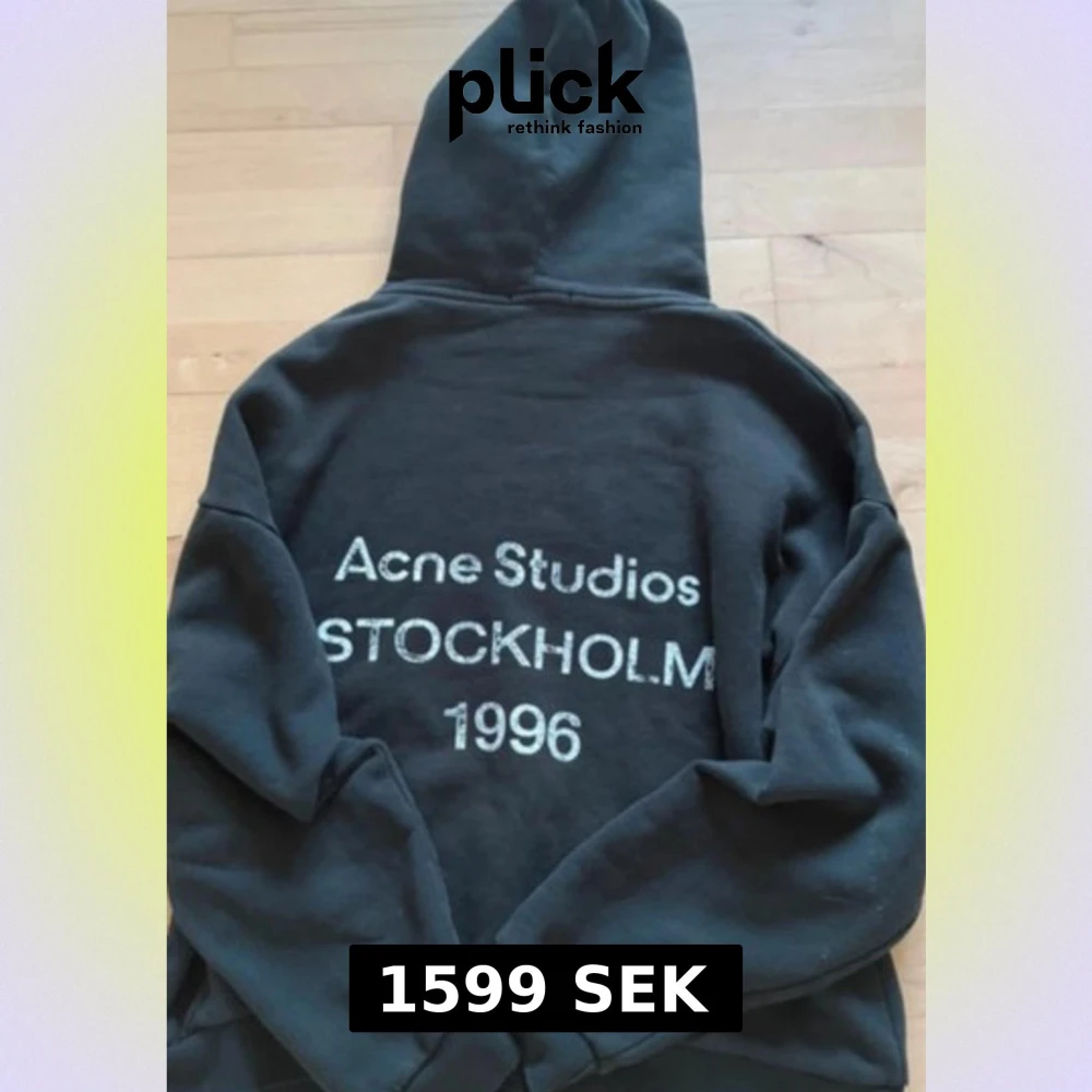 Svart hoodie från Acne Studios med stor huva och tryck på ryggen: 'Acne Studios STOCKHOLM 1996'. Tröjan har lång ärm och klassisk loose passform. Perfekt för dig som gillar streetwear och enkel stil.