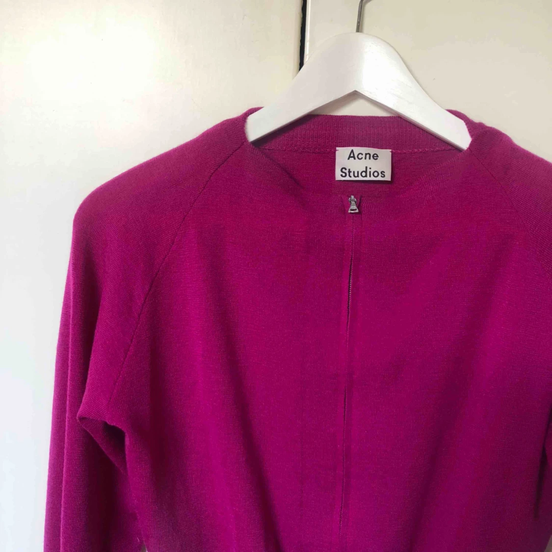 Jättefin Acne tröja i storlek L men passar mig som är 36-38 perfekt! Har en silvrig dragkedja nedför framsidan. Första bilden visar färgen bäst.