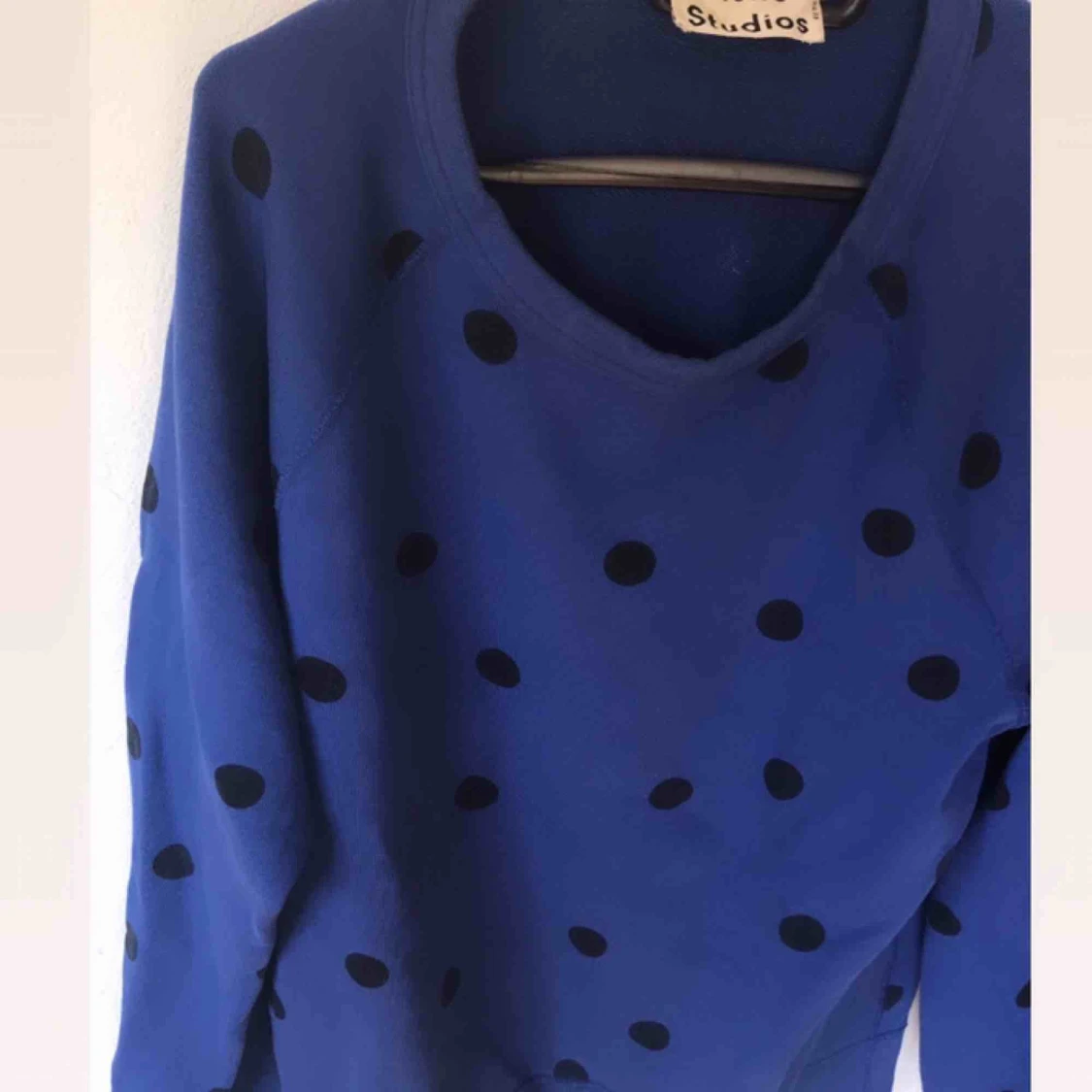 Blå tröja med prickar. Fått fr pojkvän därav lite oversize modell. Herr (S) Dam (L)