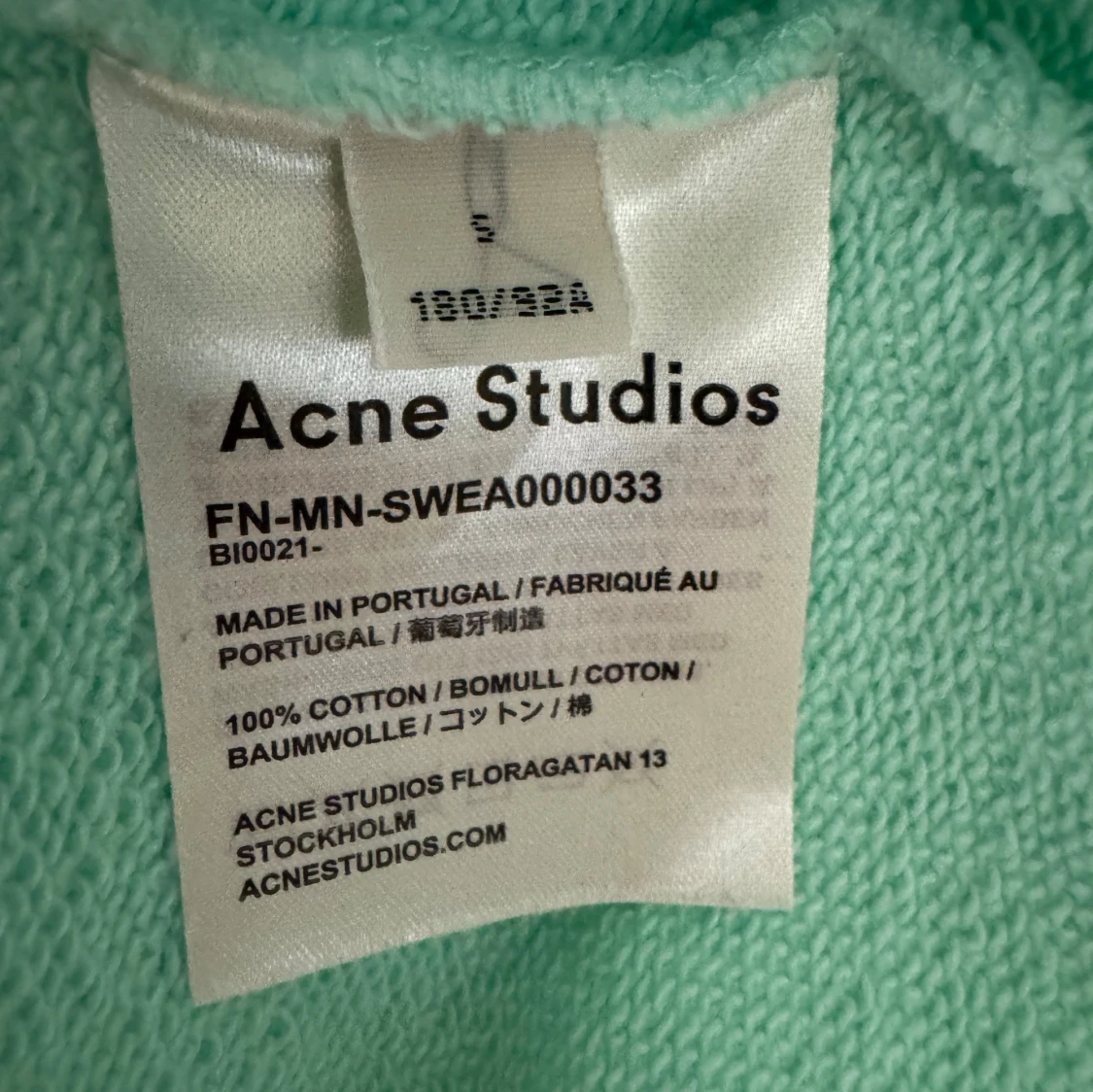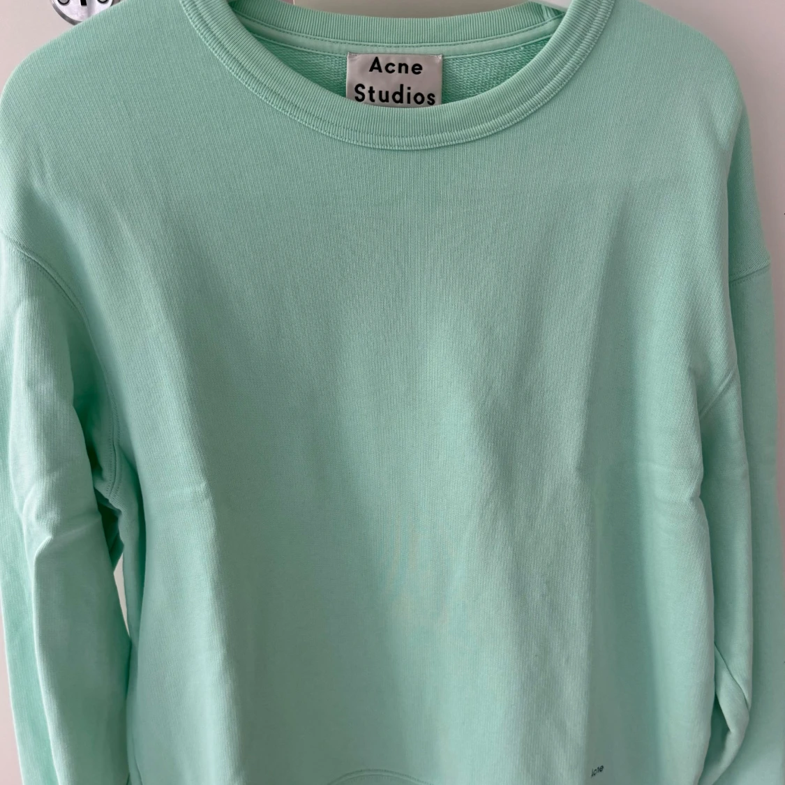 Stilren sweatshirt i en härlig fräsch färg. Har endast använts en gång. Passar XS-M beroende på önskad passform (herrmodell men funkar unisex).