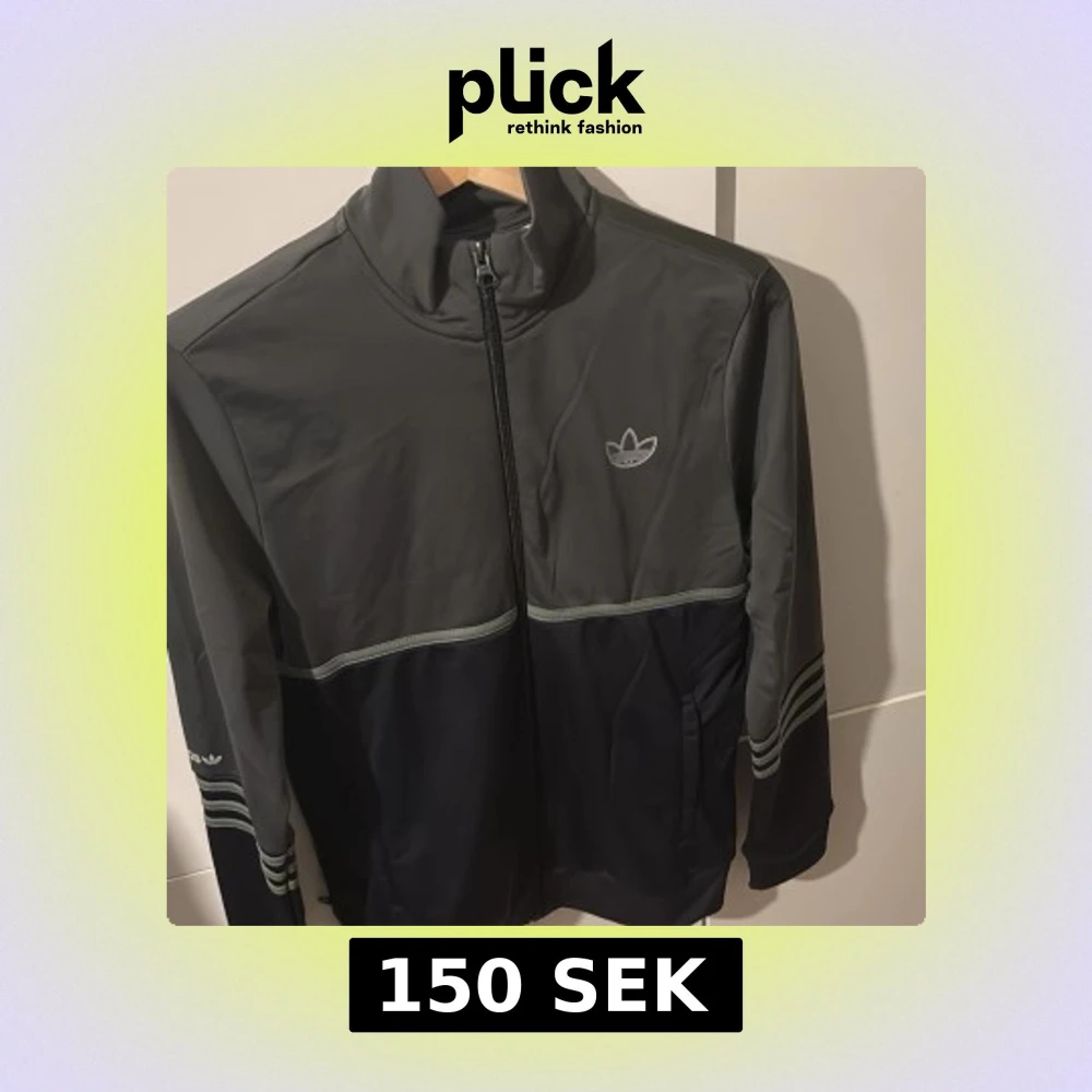 Snygg ziptröja från Adidas i grått och svart med klassiska treklövern på bröstet. Tröjan har hel dragkedja, ståkrage och diskreta ränder på ärmarna. Perfekt för chill eller träning, med praktiska fickor och sportig look.