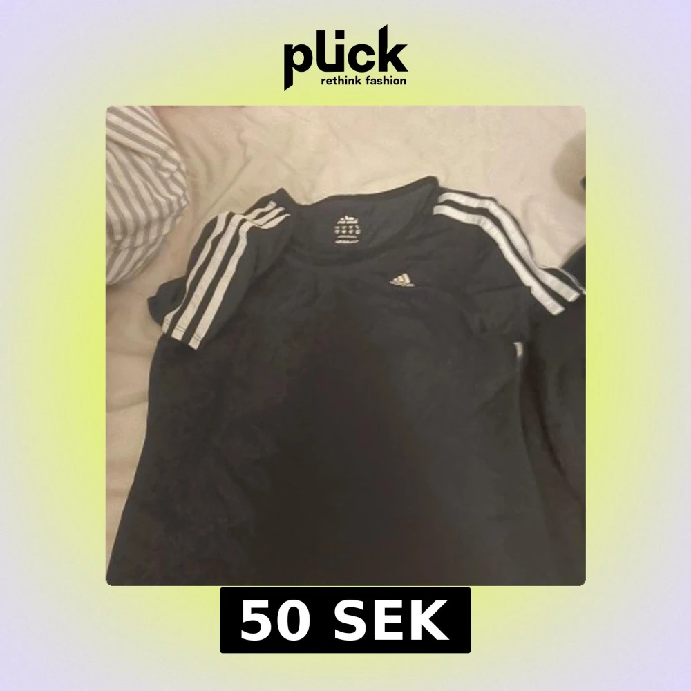 Svart t-shirt från Adidas med klassiska vita ränder längs axlarna och det ikoniska loggan på bröstet. Kortärmad modell i lätt och sportigt material, perfekt för träning eller chill dagar. Snygg och enkel att matcha med det mesta.