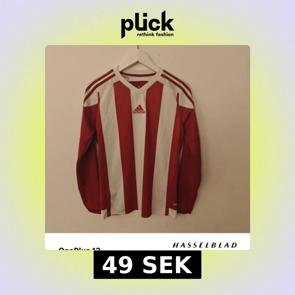 Snygg långärmad fotbollströja från Adidas i rött och vitt med klassiska vertikala ränder och v-ringad krage. Tillverkad i lätt och ventilerande ClimaCool-material, perfekt för intensiva matcher eller träning. Ikoniska Adidas-ränder på axlar och ärmar.