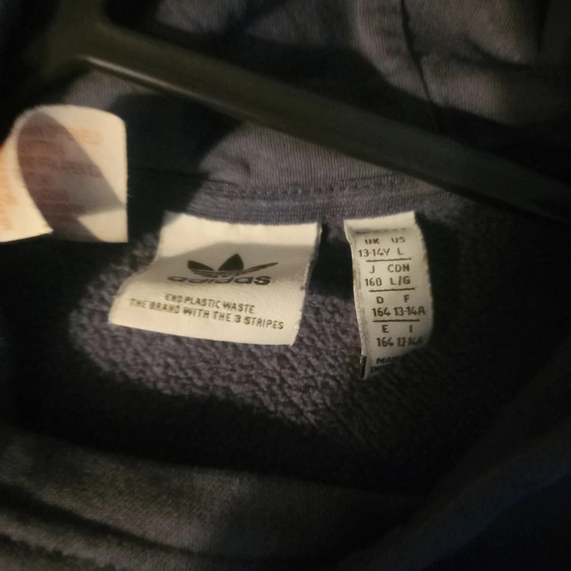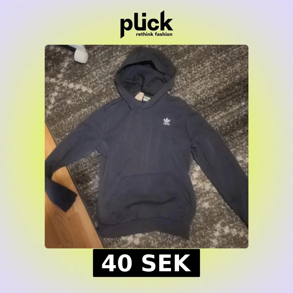Säljer en blå hoodie från Adidas med klassisk logga på bröstet. Tröjan har huva, magficka och är tillverkad i mjuk bomullsblandning. Perfekt för chill dagar eller när du vill ha en enkel och stilren look. Som Storlek XXS- liten s. Unisex. Rekommenderas bäst till xs