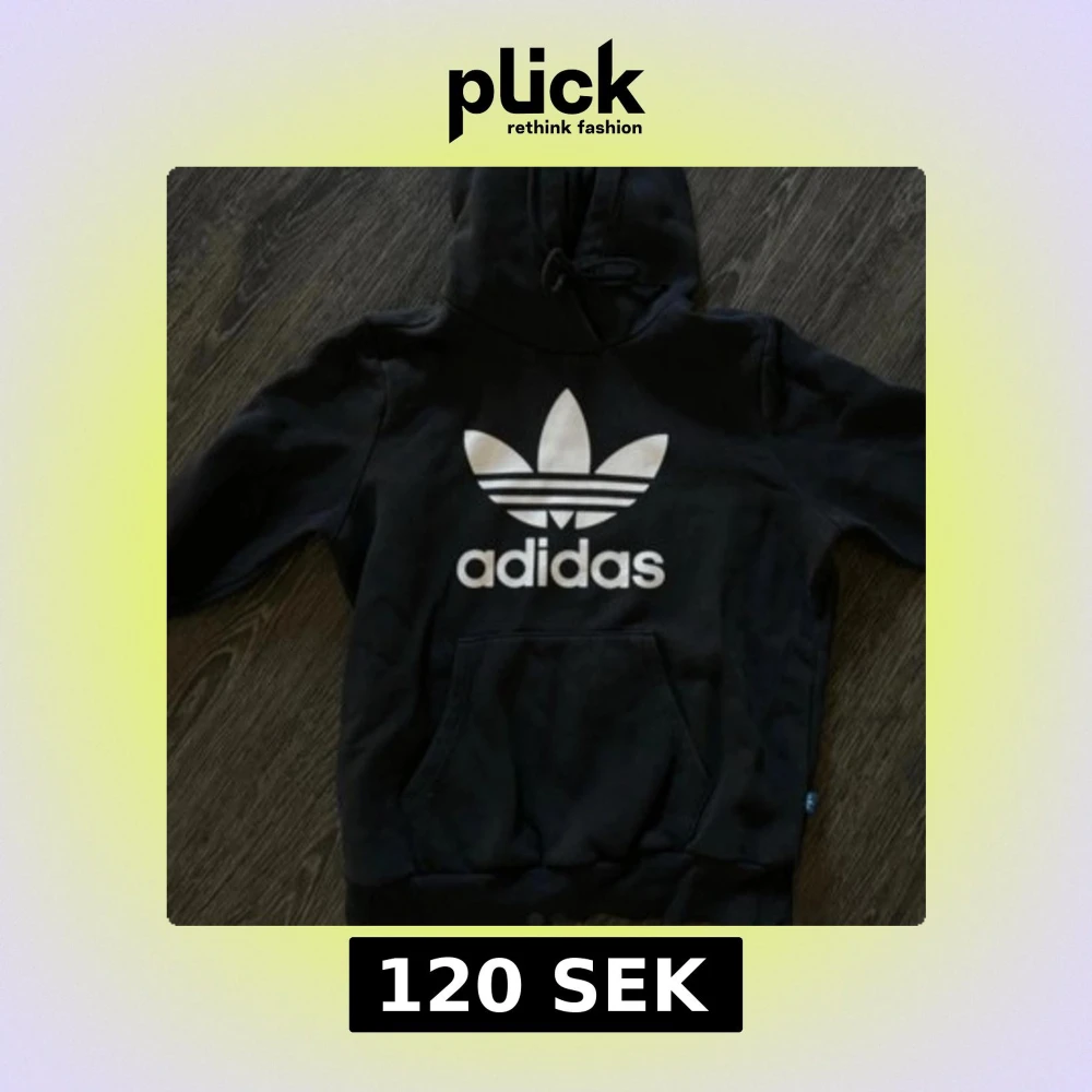 Snygg svart hoodie från Adidas med det klassiska logotyptrycket i vitt på framsidan. Tröjan har en stor ficka framtill och en bekväm huva. Perfekt för en avslappnad stil. Passar som XS/S.