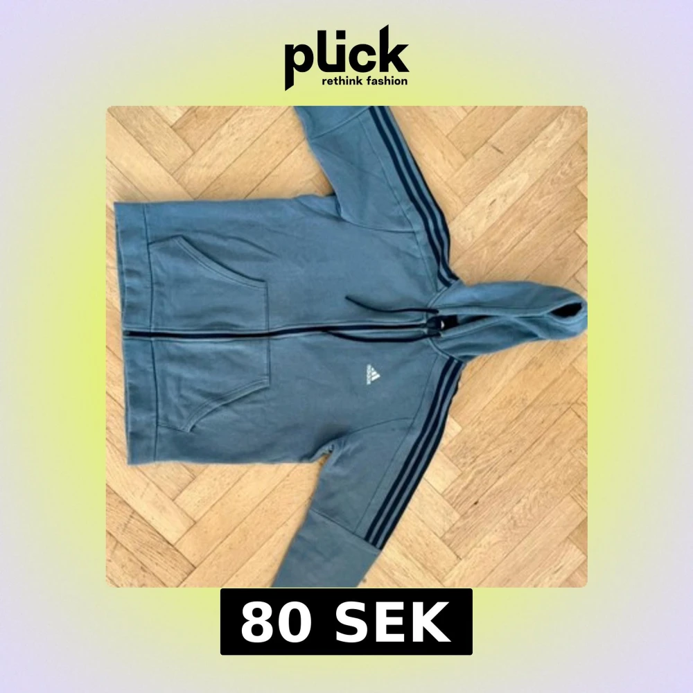 Säljer en grå hoodie från Adidas med klassiska svarta ränder längs ärmarna och vit logga på bröstet. Tröjan har dragkedja, huva med snörning och två stora fickor framtill. Perfekt för en sportig och avslappnad stil.