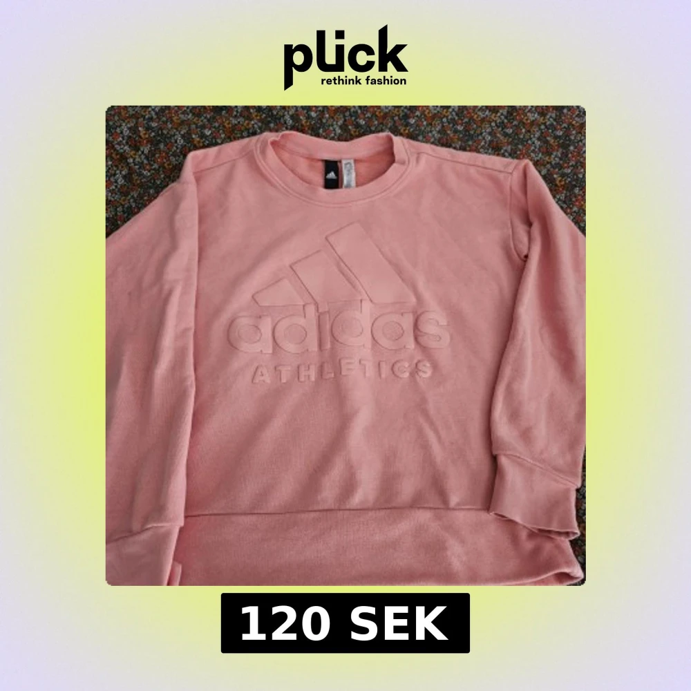 Säljer en snygg rosa sweatshirt från Adidas med deras logga och texten 'ATHLETICS' i relief på framsidan. Tröjan har långa ärmar och en rund halsringning. Perfekt för en sportig look eller en avslappnad dag.