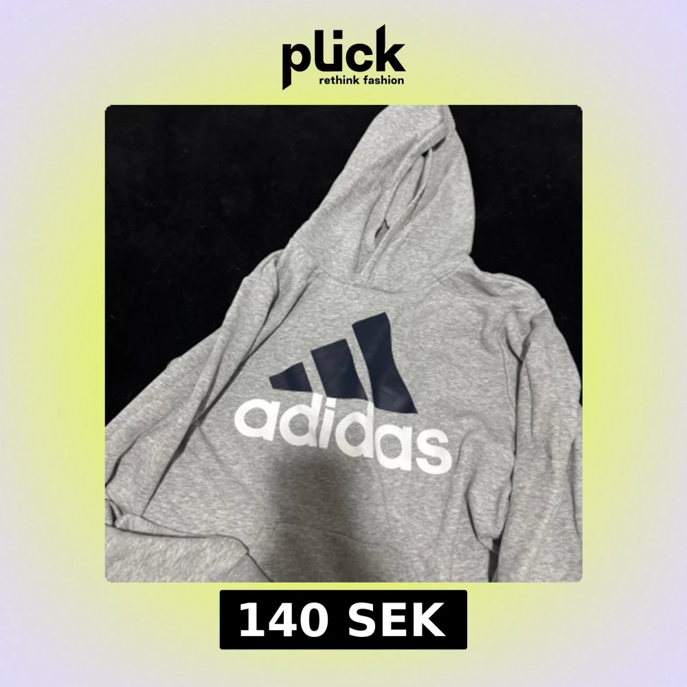 Säljer en klassisk grå hoodie från Adidas med deras ikoniska logga i vitt på framsidan. Tröjan har en bekväm huva och långa ärmar, perfekt för en avslappnad stil. Passar bra till både träning och vardag.