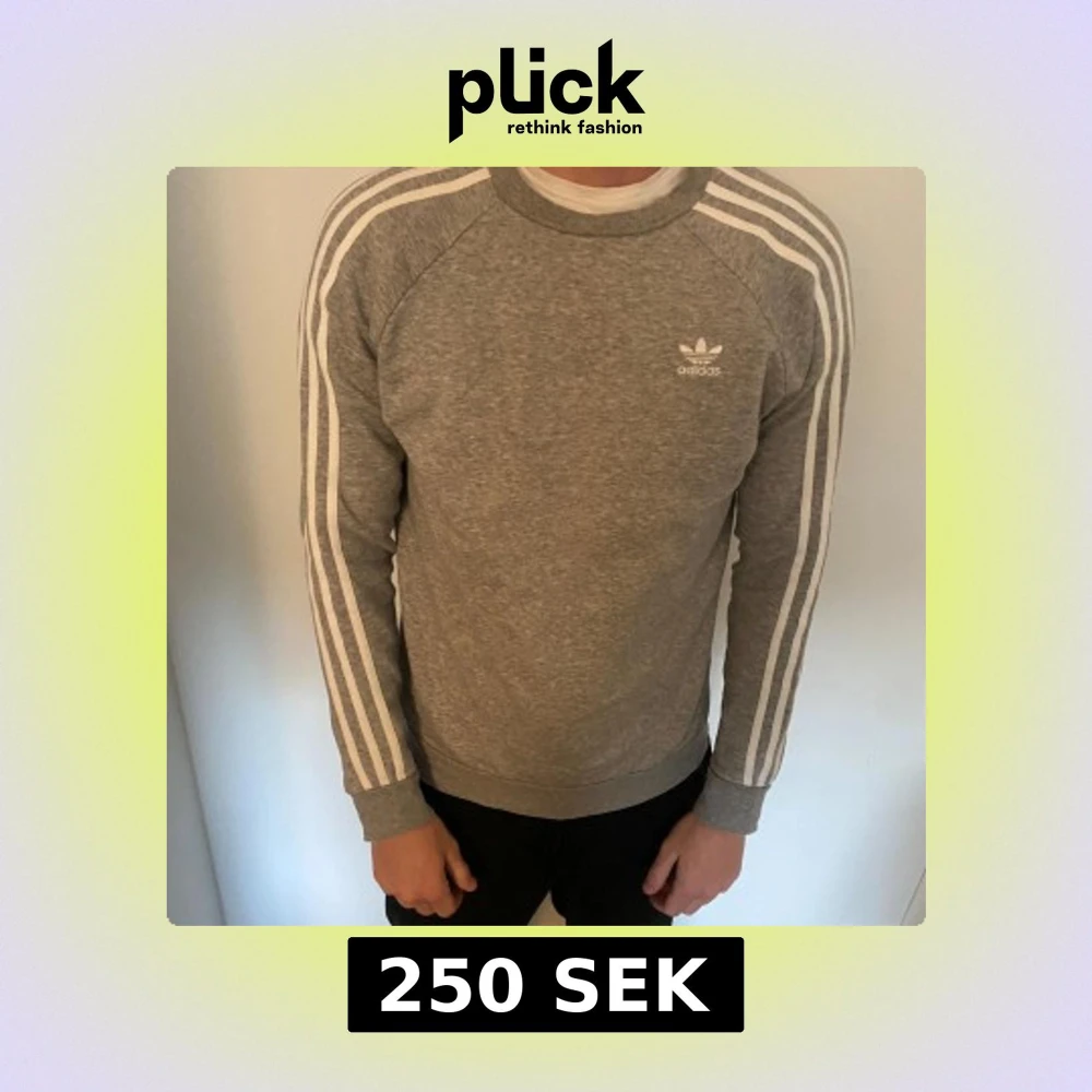 Säljer en grå sweatshirt från Adidas med klassiska vita tre ränder längs ärmarna och Adidas-logga på bröstet. Inte kommit till användning så därför den säljs! Mycket bra skick