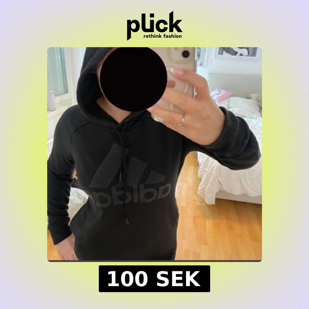 Svart hoodie från Adidas med stor logga framtill och snörning i huvan. Tröjan har lång ärm och klassisk passform, perfekt för chill eller träning. Mjuk och skön i materialblandning med polyester och bomull.
