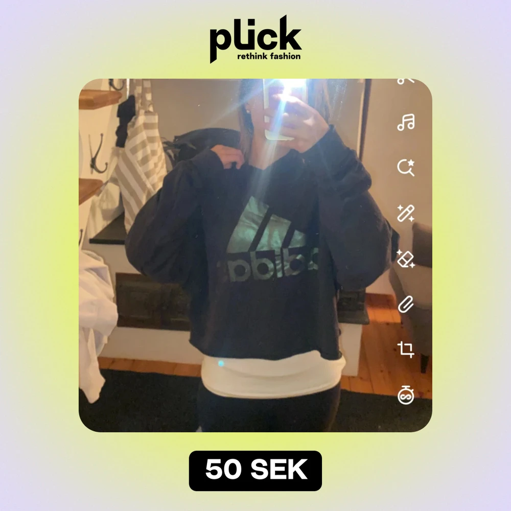 Säljer en svart croppad hoodie från Adidas med deras ikoniska logga i silver på framsidan. Den är superbekväm och perfekt för en avslappnad stil. Passar perfekt till både träning och vardagsoutfits. Hör av dig om du är intresserad! 🖤