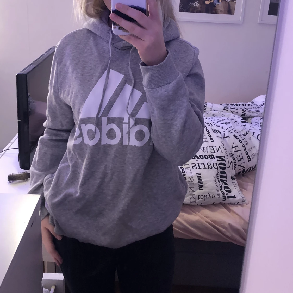 Säljer min adidas hoodie då jag aldrig använder den. Den har inga fläckar. Det är storlek XL och är då alldeles för stor för mig har använt den som en mys hoodie hemma.